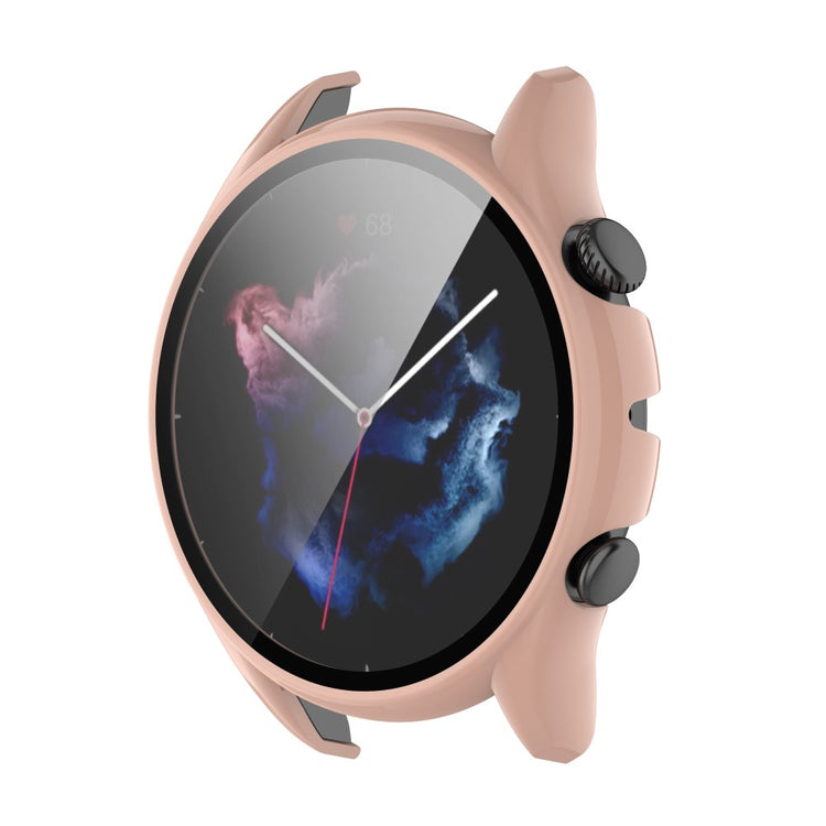 Hard PC-ramme med innbygd herdet glassbeskyttelse for Huami Amazfit GTR3/GTR3 Pro gir ultimate beskyttelse mot riper, fall og støt. Den ultratilte designen opprettholder den originale berøringsskjermfølsomheten og en klar visuell opplevelse. Presise utskjæringer gir tilgang til alle kontroller, knapper og sensorer, noe som gjør dette til et flott tilbehør for å beskytte klokken din.