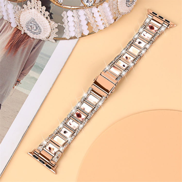 Denne stilige klokkereimen er laget av rustfritt stål med resinblokker, noe som gir en kreativ og slitesterk kombinasjon. Funkler med skinnende rhinestones som gir klokken et unikt og stilig preg, og lar deg personalisere din smartklokke.