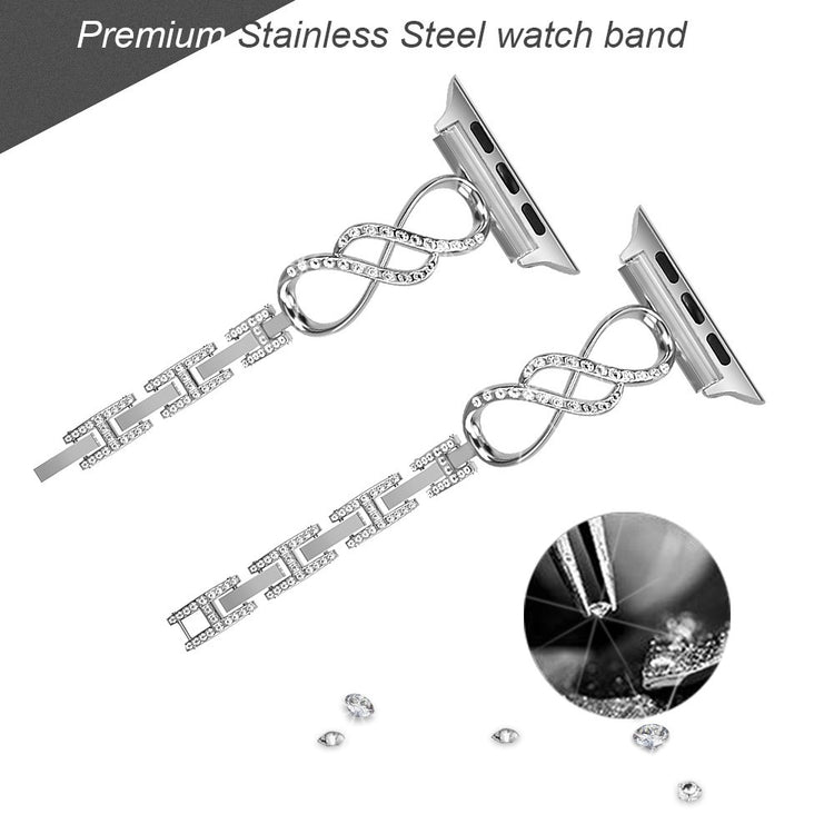 Denne stilige klokkereimen er laget av høykvalitets metall og dekorert med glitrende rhinestones som gir et elegant og stilfullt utseende. Reimen er polert til perfeksjon uten skarpe kanter, og er både vanntett og svettebestandig for komfortabel bruk.
