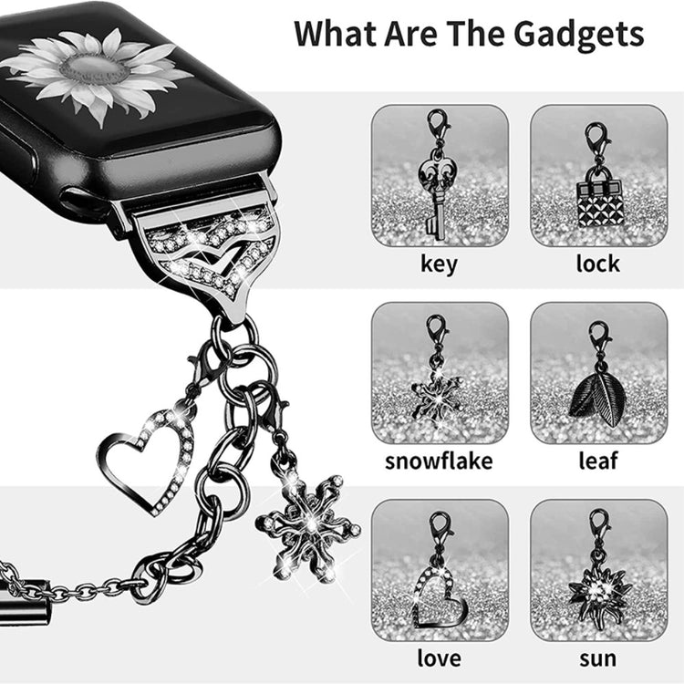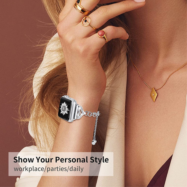 Dekorer din smartwatch med dette stilige armbåndet som er designet for Apple Watch Series 9 / 8 / 7 41mm / 6 / 5 / 4 / SE (2023) / SE (2022) / SE 40mm / 3 2 1 38mm. Laget av premium rustfritt stål, er dette armbåndet både holdbart og robust, noe som sikrer langvarig bruk. Den justerbare designen gjør det enkelt å tilpasse armbåndet til forskjellige håndleddstørrelser, og du kan velge mellom flere forskjellige pendeldesign som gir et elegant og delikat preg. Dette er den perfekte erstatningen for ditt gamle, ødelagte armbånd, som ikke bare viser din gode smak, men også forbedrer utseendet på klokken din betydelig.