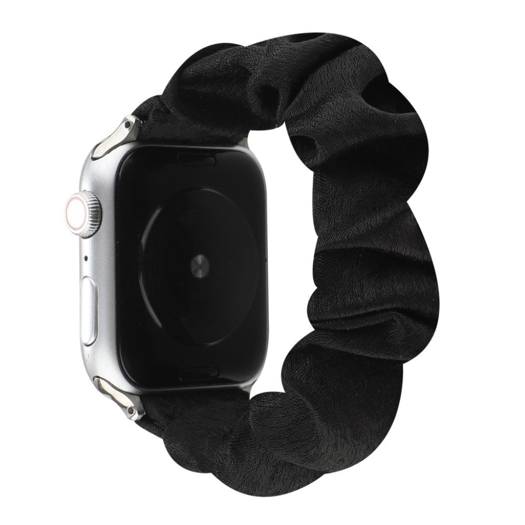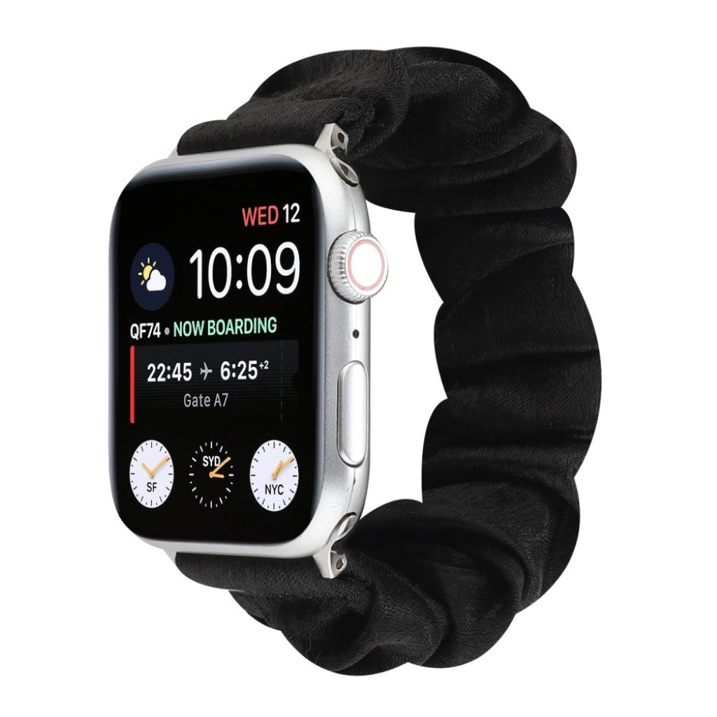 Dette scrunchie hårbåndet som kan brukes som klokkerem passer til alle versjoner av Apple Watch 40mm og 38mm. Den stilige designen med elastisk bånd gjør det enkelt å justere størrelsen, og det finnes flere mønsteralternativer for et unikt utseende. Den er laget av høy-kvalitets stoff og et slitesterkt elastisk bånd, noe som gjør den veldig komfortabel og lettvint i bruk.