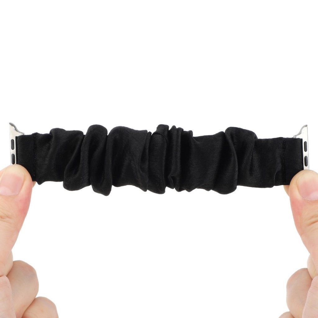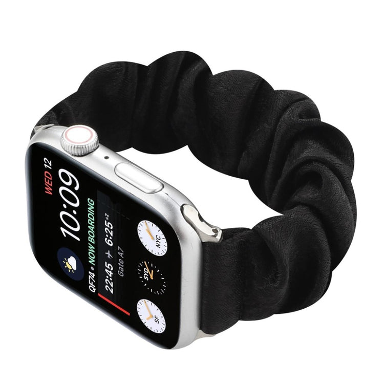 Denne stilige scrunchie-klokkereimen passer til Apple Watch Series 9, 8, 7, 6, SE (2023), SE (2022), 4, 5, 3, 2 og 1 i størrelsene 40mm og 38mm. Den elastiske designen gjør det enkelt å justere størrelsen og gir en behagelig passform.