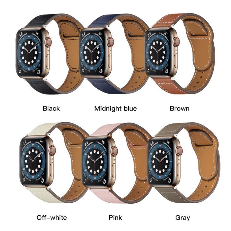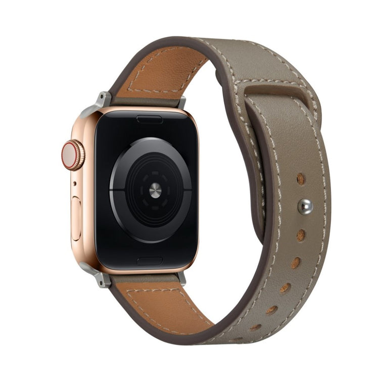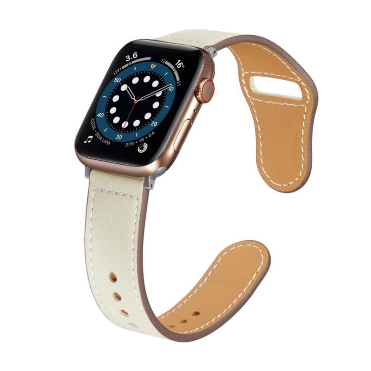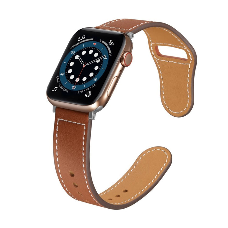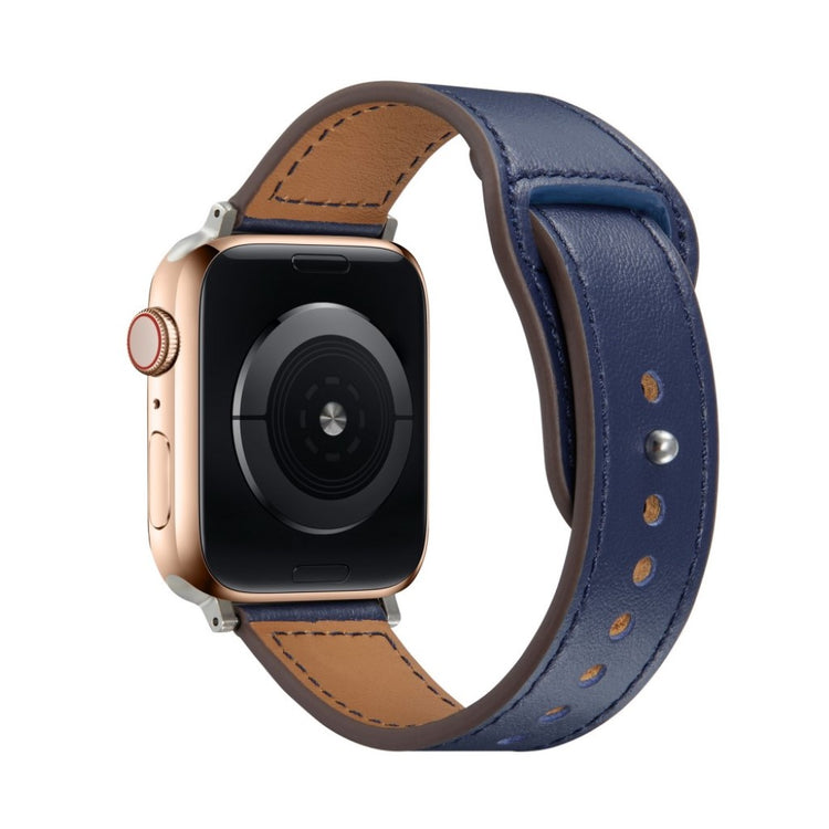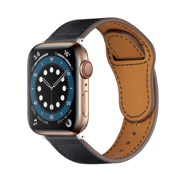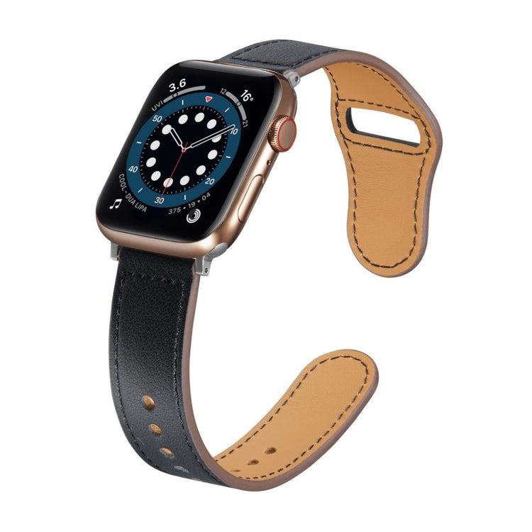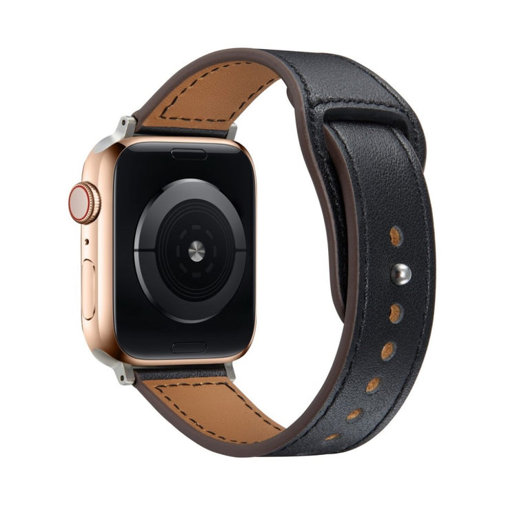 Gi din Apple Watch et nytt og stilig utseende med denne reimen i ekte lær. Reimen er komfortabel å ha på og har et stilig design med nagler. Den passer perfekt til Apple Watch Series 7/8 41mm, Series 6/5/4/SE/SE(2022) 40mm, og Series 3/2/1 38mm.