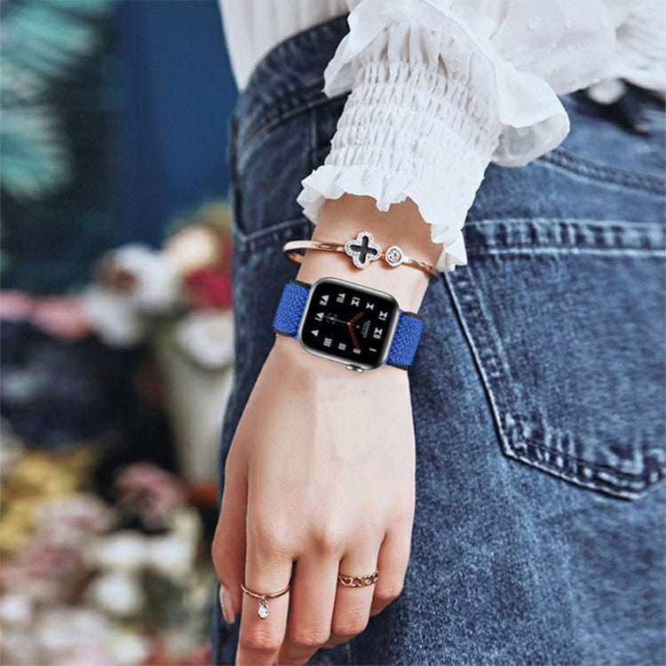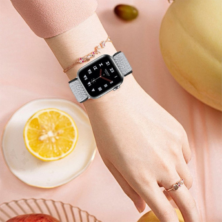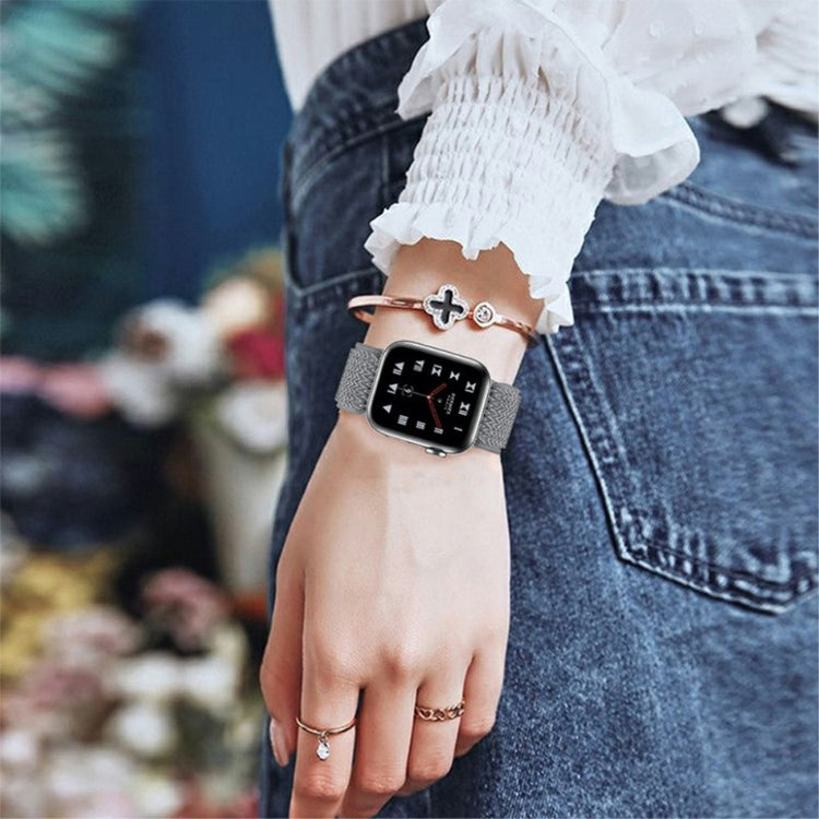 Oppgrader din smartwatch med vårt erstatningsarmbånd i flettet nylon! Denne elegante og stilige armbåndet gir et personligere preg til din smartklokke. Laget av premium flettet materiale, tilbyr det en myk og elastisk følelse som gjør det behagelig å ha på seg hele dagen. Den praktiske spenne-designen gjør det enkelt å justere størrelsen for en perfekt passform. Dette er den ideelle erstatningen for ditt gamle eller ødelagte armbånd. Med en størrelse som passer håndleddet ditt fra 5.3 til 8.3 tommer, er dette armbåndet både funksjonelt og tilpassbart. Gi din Apple Watch et nytt liv med dette flotte armbåndet!