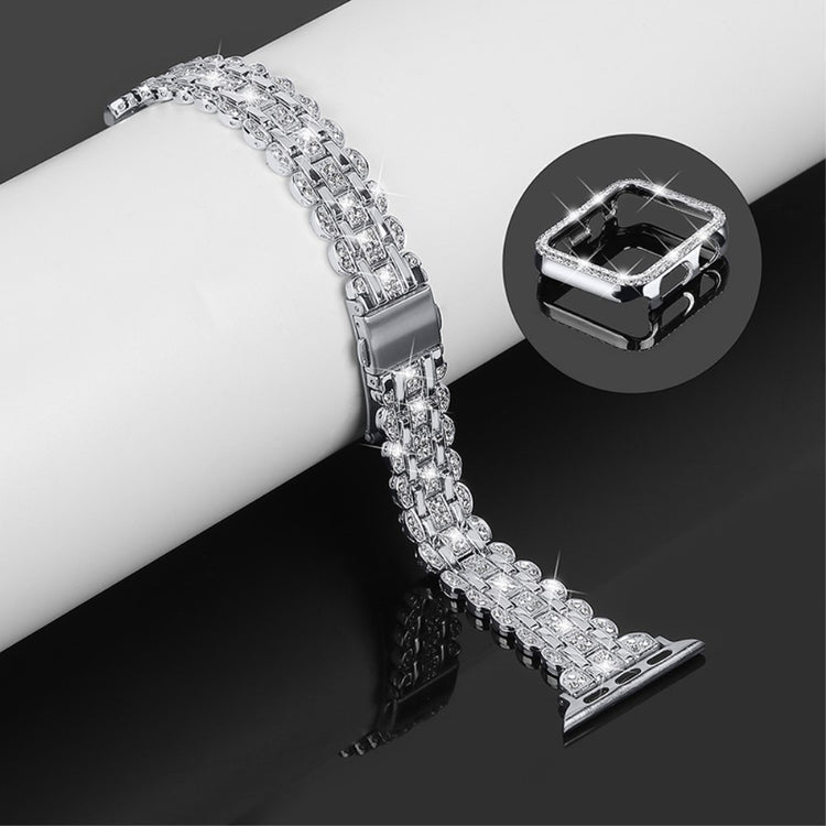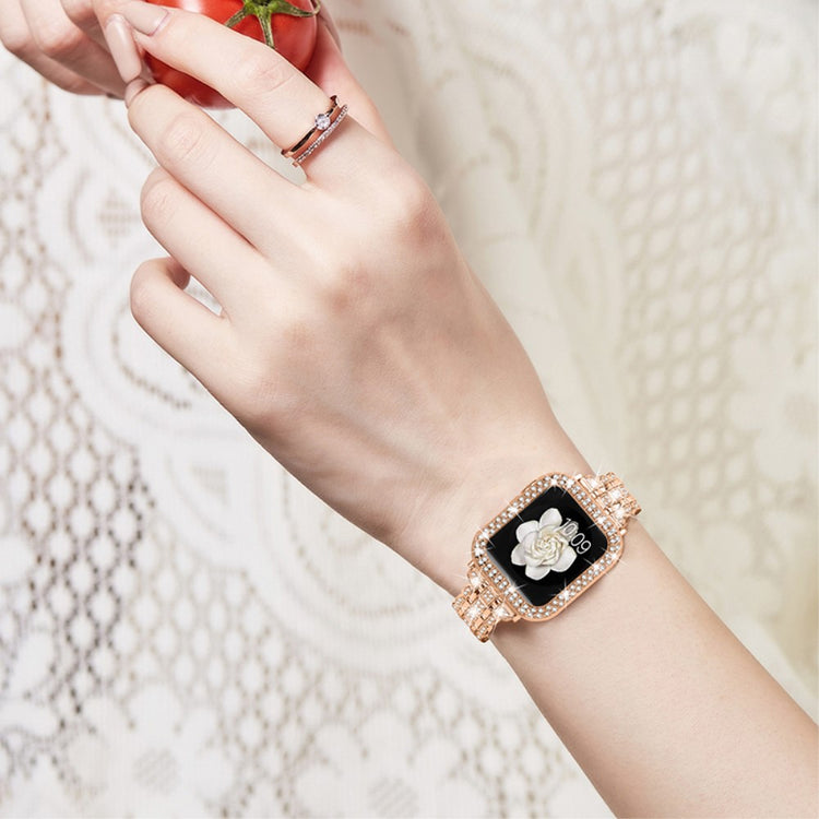 Denne stilige klokkereimen med hardt PC-beskyttelse er designet for Apple Watch SE / SE (2022) / Series 4 / 5 / 6 40mm. Klokkereimen er laget av slitesterkt rustfritt stål, mens beskyttelsesdekselet er laget av hard og slitasjebestandig PC-materiale. Med glitrende rhinestones blir din smartklokke unik og stilig, og gir den et personlig preg.