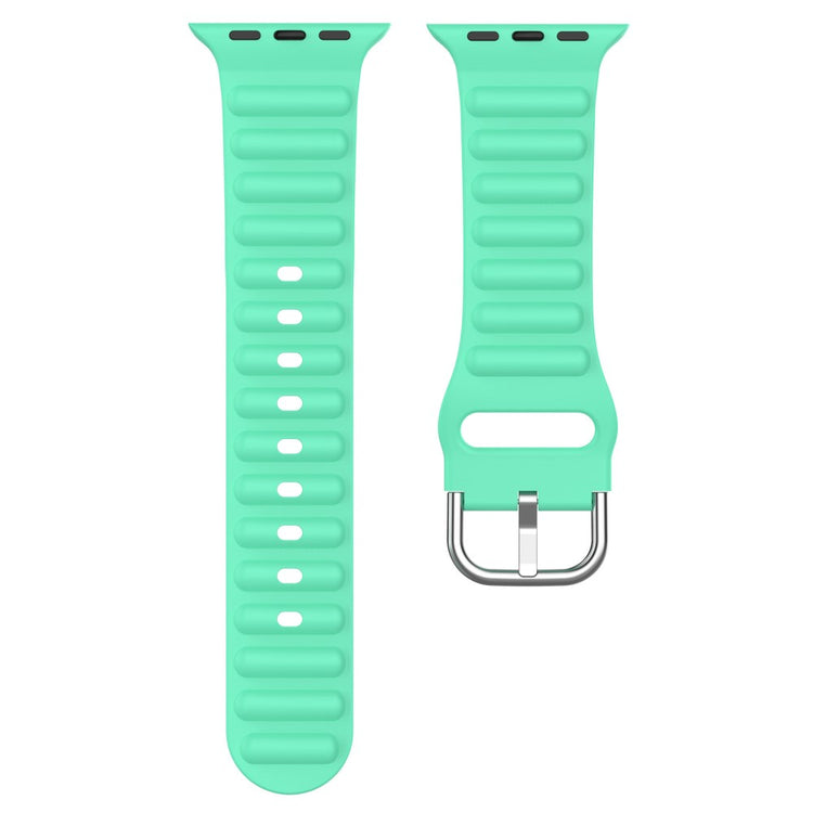 Er du på utkikk etter et stilfullt og komfortabelt armbånd til din smartklokke? Dette armbåndet til Apple Watch Ultra 2, Series 9, SE (2023) og flere modeller er laget av høykvalitets silikon med et bølge-design som gir det et unikt preg. Den myke silikonen er ubehagelig mot huden og skaper ingen allergiske reaksjoner, samtidig som det er holdbart og av høy kvalitet. Armbåndet har en squared buckle som gjør det enkelt å justere størrelsen, og med sitt design som har flere hull, passer det de fleste håndleddstørrelser fra 6,1 til 8,5 inch. Enten du skal på jobb, slappe av i helgen eller delta på en annen anledning, er dette armbåndet det perfekte alternativet til ditt gamle eller ødelagte armbånd. Velg et armbånd som passer deiner stil og oppgrader din smartklokke i dag!