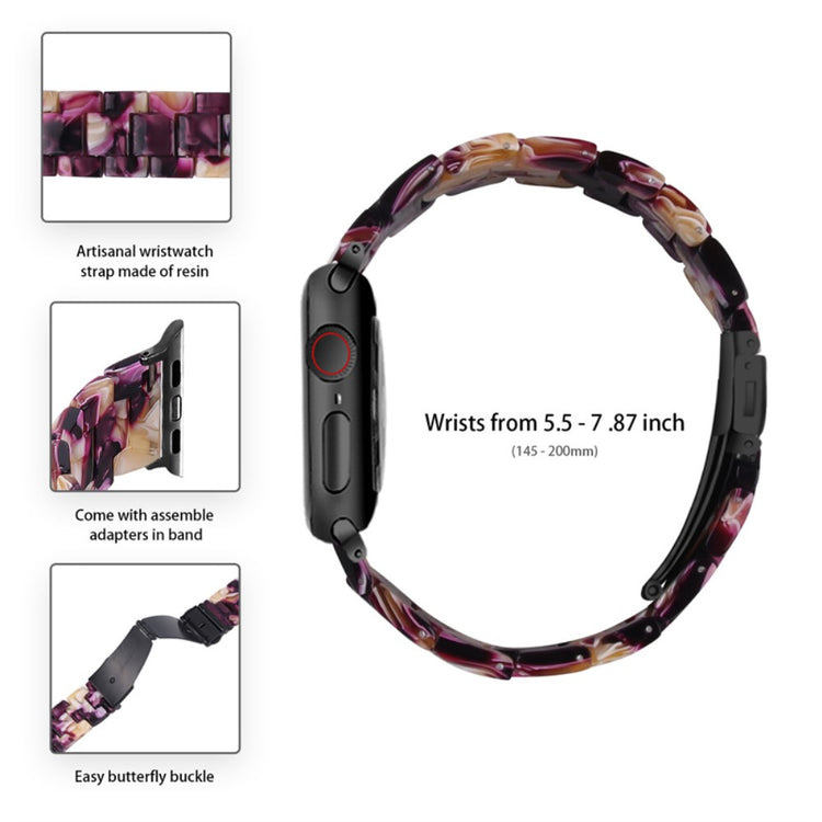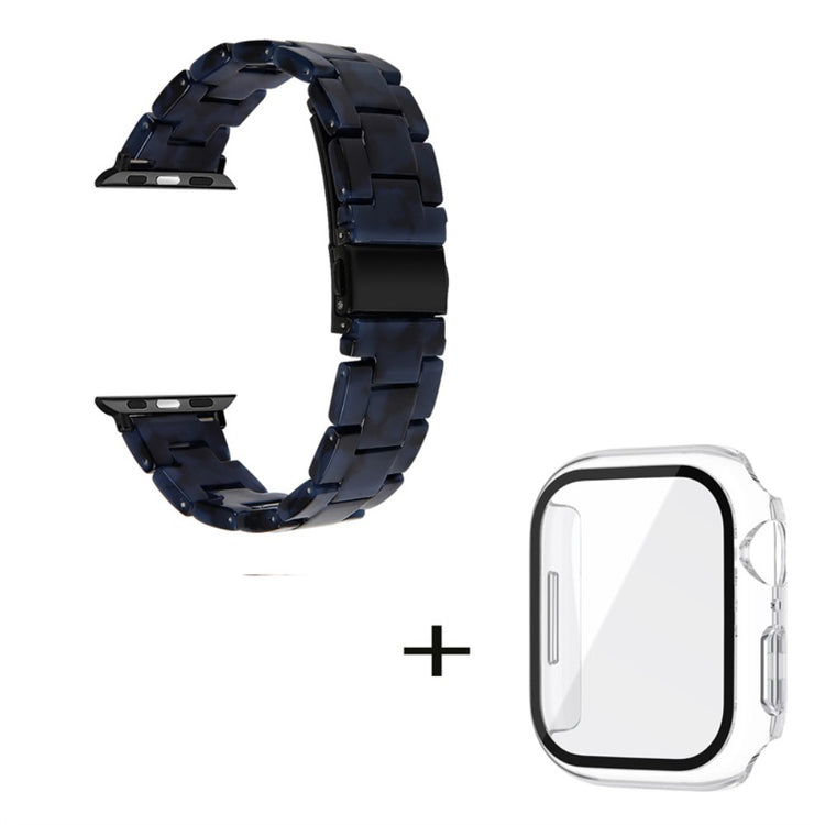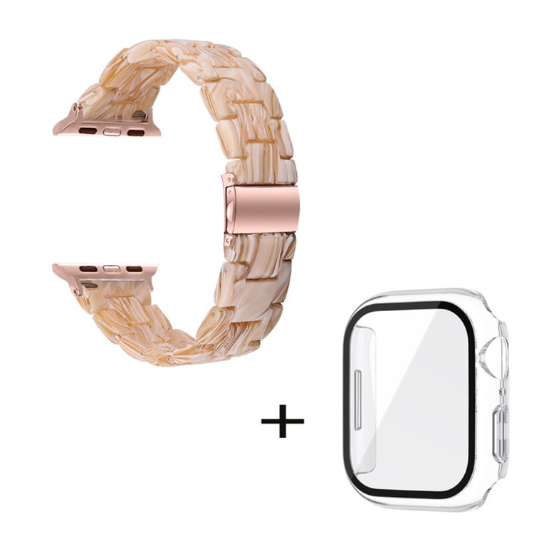 Denne stilige klokkereimen er designet for Apple Watch Series 6 / 5 / 4 / SE / SE (2022) 44mm. Den kombinerer et elegant tre-perlers resin-armbånd med et gjennomsiktig klokkedeksel for optimal beskyttelse.
