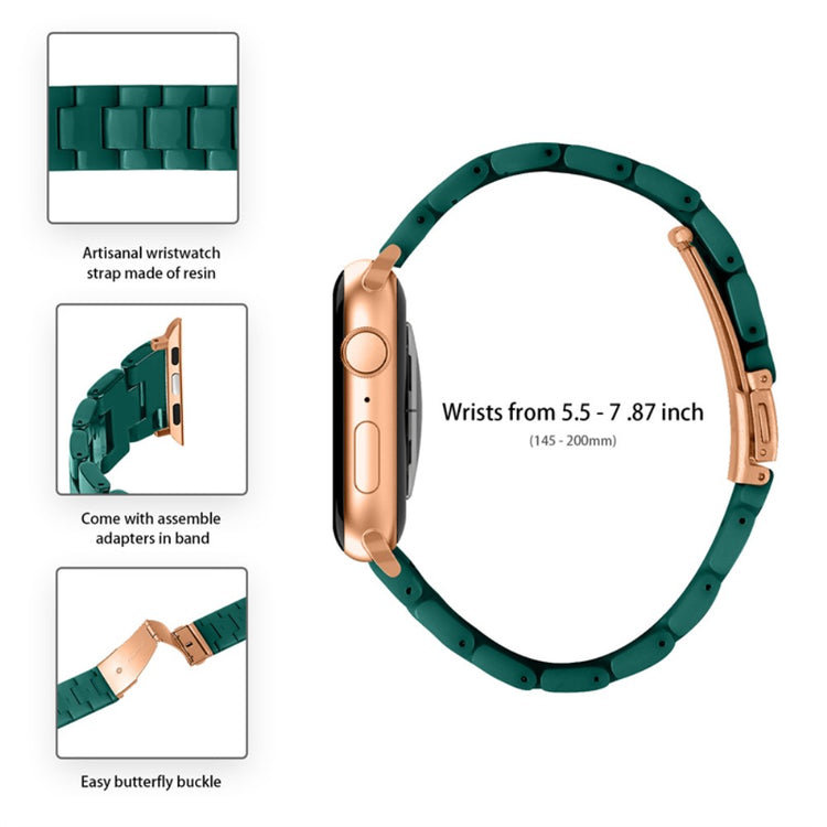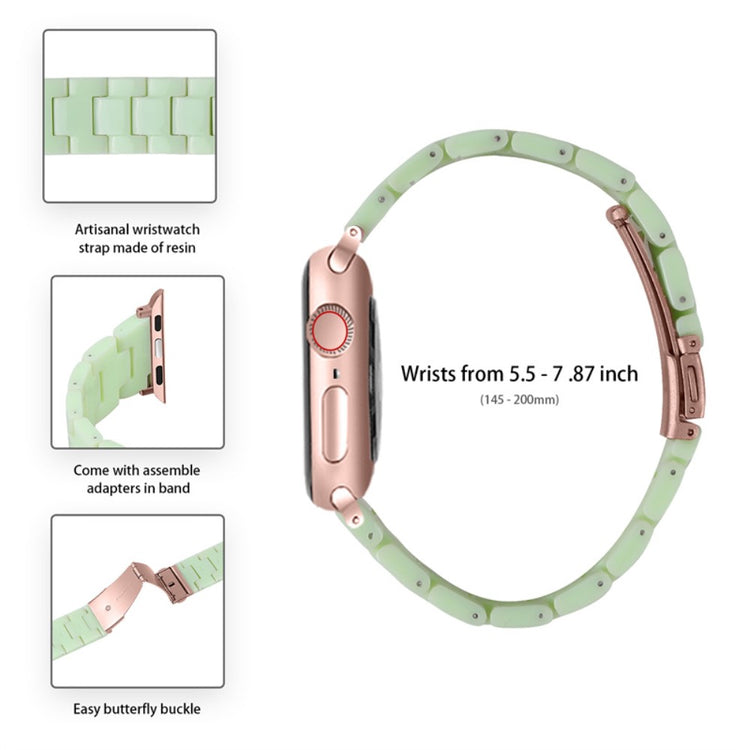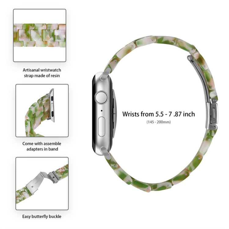 Oppgrader ditt tilbehør med et erstatningsurband til Apple Watch Series 6 / 5 / 4 / SE / SE (2022) på 44mm som kombinerer stil og funksjonalitet. Dette båndet er laget av høykvalitets harpiksmateriale som er både vanntett og rustfritt, noe som gjør det perfekt for aktiv bruk. Hvert harpiksstykke er håndpolert av erfarne håndverkere, og kombinasjonen med stainless steel folding clasp gir en sikker lukking. Den smidige designen gjør det enkelt å demontere og erstatte båndet takket være den rustfrie ståladapteren og låsen. I tillegg beskytter det gjennomsiktige klokkevesken uret ditt mot fall, riper og andre skader. Passer håndledd med omkrets fra 14cm til 20cm, noe som gjør dette til et ideelt valg for mange. Ta vare på uret ditt og gi det et nytt utseende med dette stilige tilbehøret!