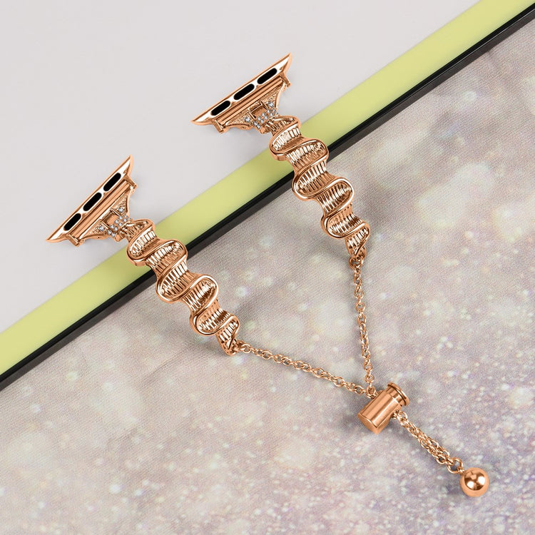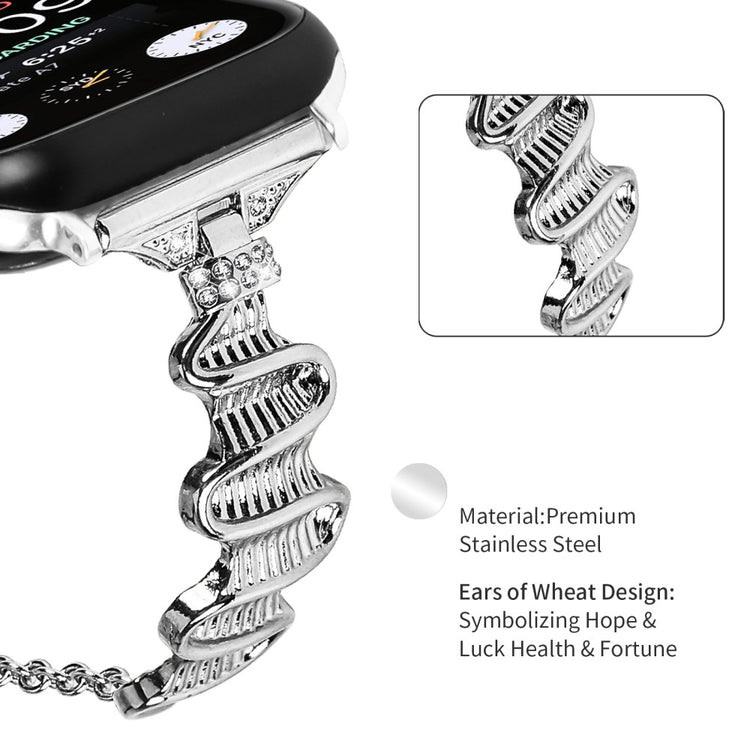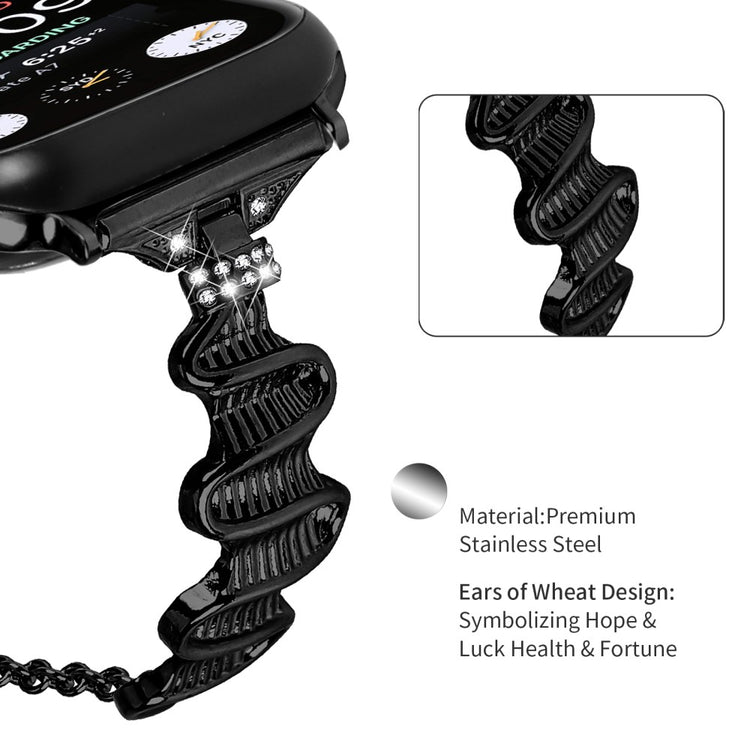 Det bølgeformede armbåndet, dekorert med strass-stener, tilpasser seg størrelsen på håndleddet ditt. Et godt valg for deg som ønsker et alternativt armbånd til din smartklokke.