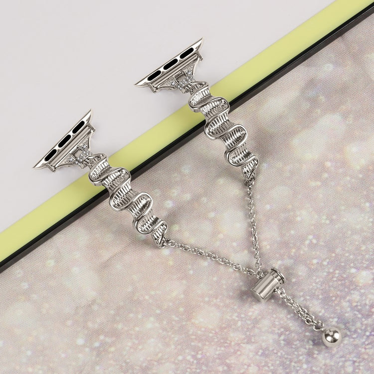 Oppgrader din stil med vårt fantastiske Alloy klokkerem som passer perfekt til Apple Watch Ultra / Ultra 2 49mm / 7 / 8 / 9 45mm / 6 / 5 / 4 / SE / SE (2022) / SE (2023) 44mm / 3 / 2 / 1 42mm. Denne smykkeremmen er justerbar og passer nesten alle kvinner, noe som gjør det enkelt å tilpasse den til ditt håndledds størrelse. Laget av glatt og polert alloy med et robust snøre, er denne armbåndet ikke bare holdbart, men også en fest for øynene. Med sine bølgete rhinestones kan du tilføre et tidløst og elegant preg til enhver antrekk. Den allsidige designen gjør at denne klokkeremmen er perfekt for enhver anledning, fra uformelle kaffemøter med venner til glamorøse cocktailfester, og vil garantert gjøre deg til senteret for oppmerksomhet. Den passer også utmerket til spesielle anledninger som bryllupsdager, bursdager, Valentinsdag og Morsdag. Dette luksuriøse klokkeremmen er den perfekte gaven til venninner eller kjærester, og vil bli en verdsatt gave i alle anledninger.