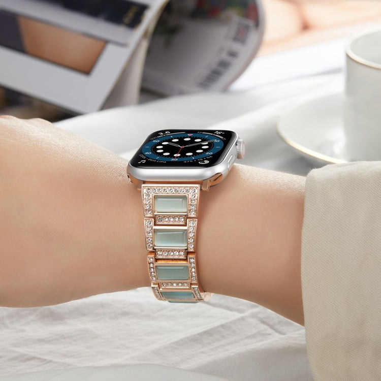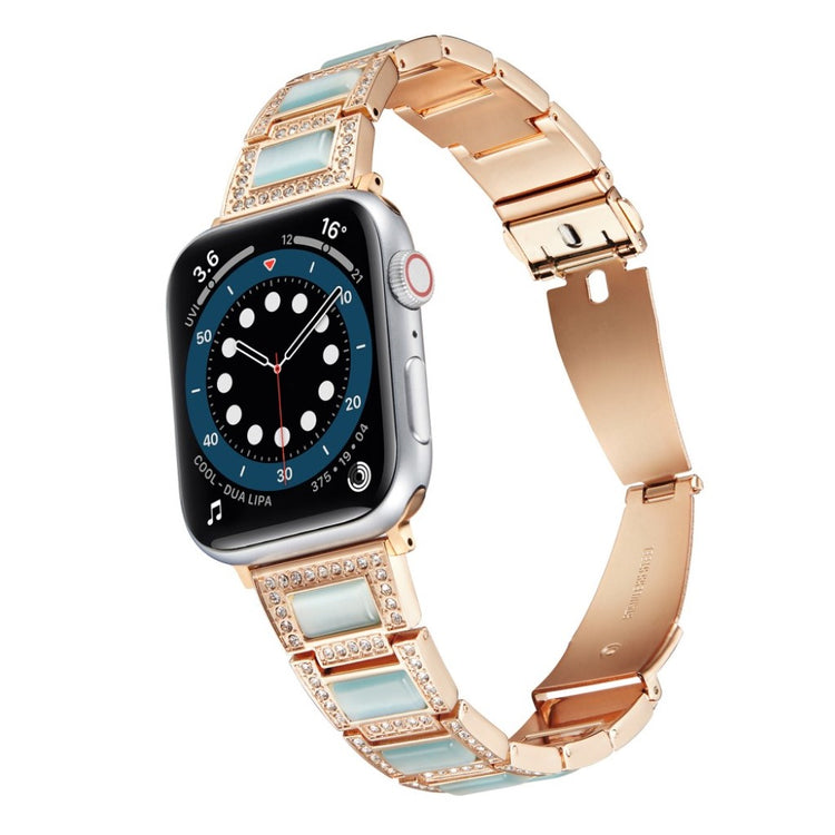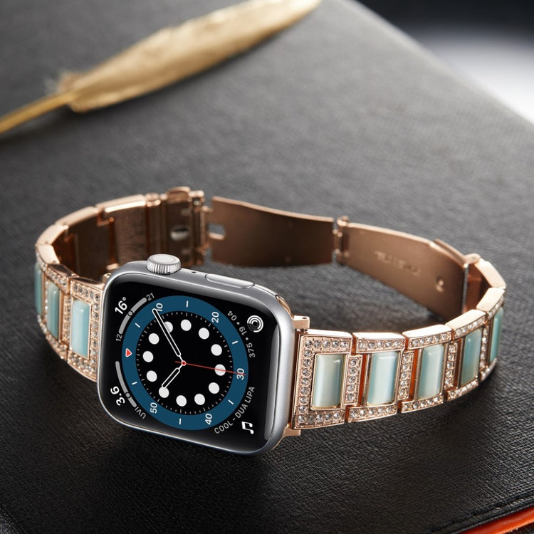 Dette smartwatch-båndet er laget av høykvalitets aluminumlegering, som gjør det både slittesterkt og holdbart. Dekorert med opal og glitrende rhinestones, gir dette båndet et delikat og luksuriøst utseende. Det er et ideelt erstatningsbånd for ditt gamle, ødelagte bånd, og det finnes flere farger å velge mellom for å møte ulike stilbehov.