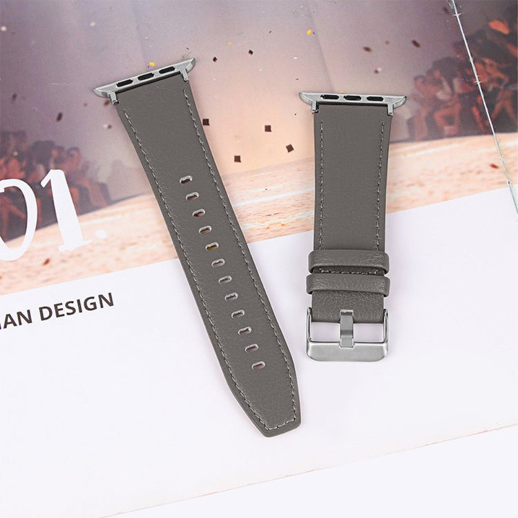 Meget skøn Apple Watch Series 7 41mm Ægte læder Rem - Sølv#serie_3