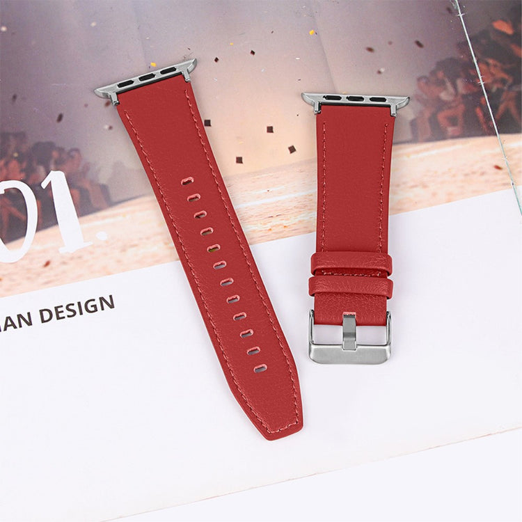 Meget skøn Apple Watch Series 7 41mm Ægte læder Rem - Rød#serie_4