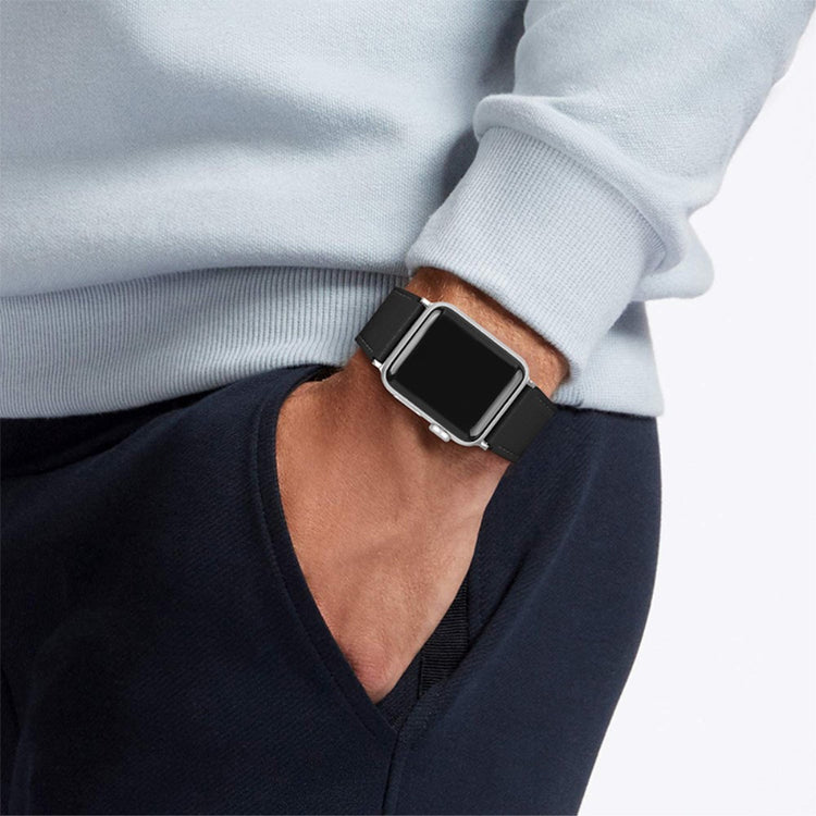 Meget skøn Apple Watch Series 7 41mm Ægte læder Rem - Sort#serie_5