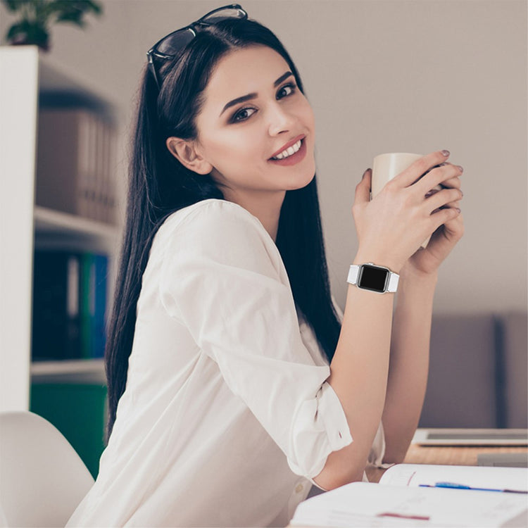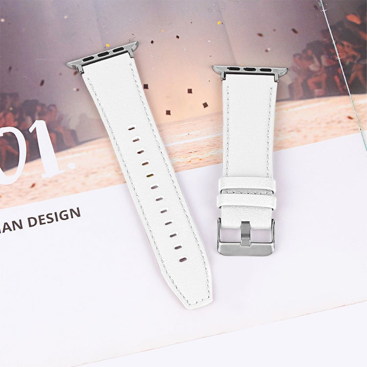 Meget skøn Apple Watch Series 7 41mm Ægte læder Rem - Hvid#serie_6