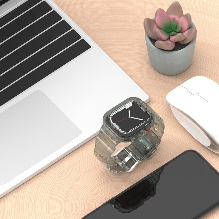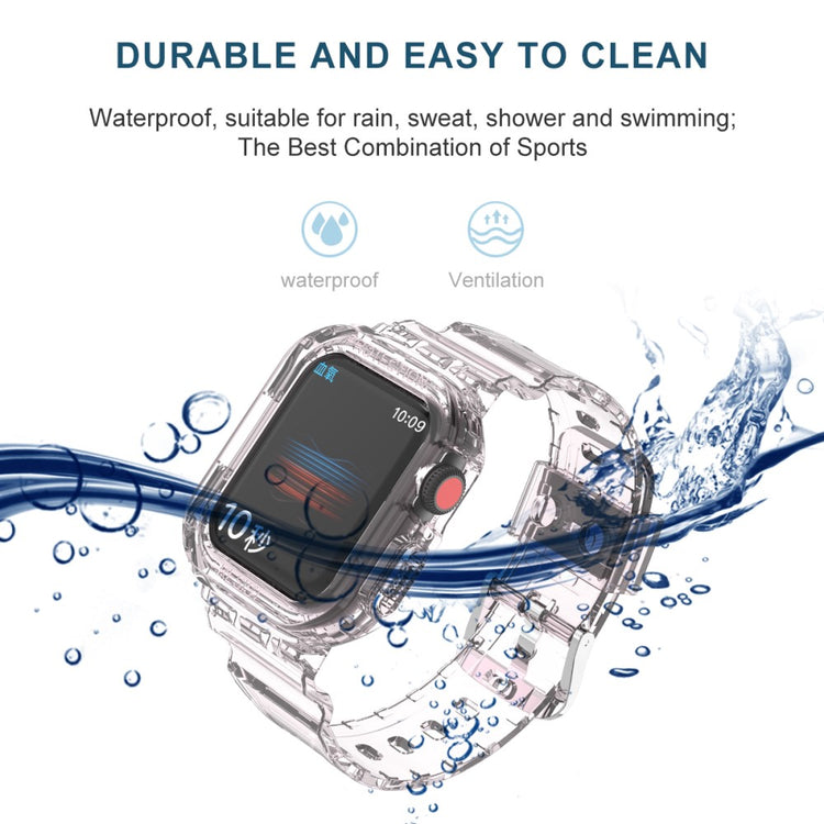 Beskytt din Apple Watch Series 7 41mm med dette gjennomsiktige TPU-beskyttelsesdekselet og den justerbare klokkenremmen. Laget av miljøvennlig og mykt TPU-materiale, sikrer dette settet både komfort og beskyttelse for din smartklokke.