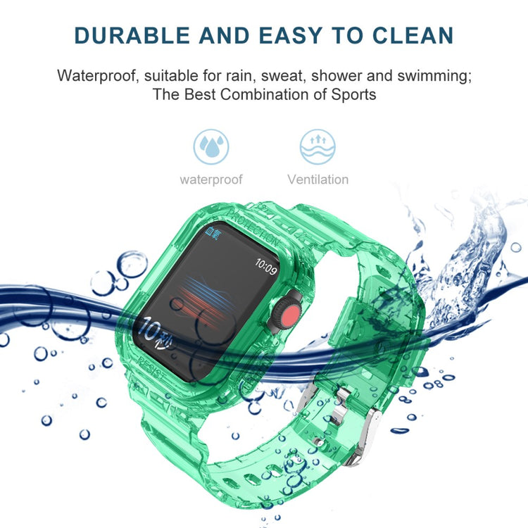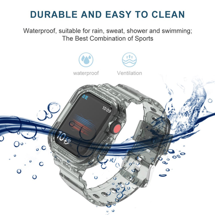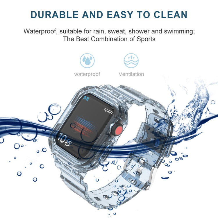 Beskytt din smartklokke med vårt glasklar TPU vanntett beskyttelsesdeksel og justerbare klokkerem, designet for Apple Watch Series 7 41mm. Laget av TPU-materiale som er både miljøvennlig og mykt, med metallspenne for enkel av- og påkledning. Nøyaktige utskjæringer sikrer en perfekt passform og gir optimal beskyttelse mot riper og støt.