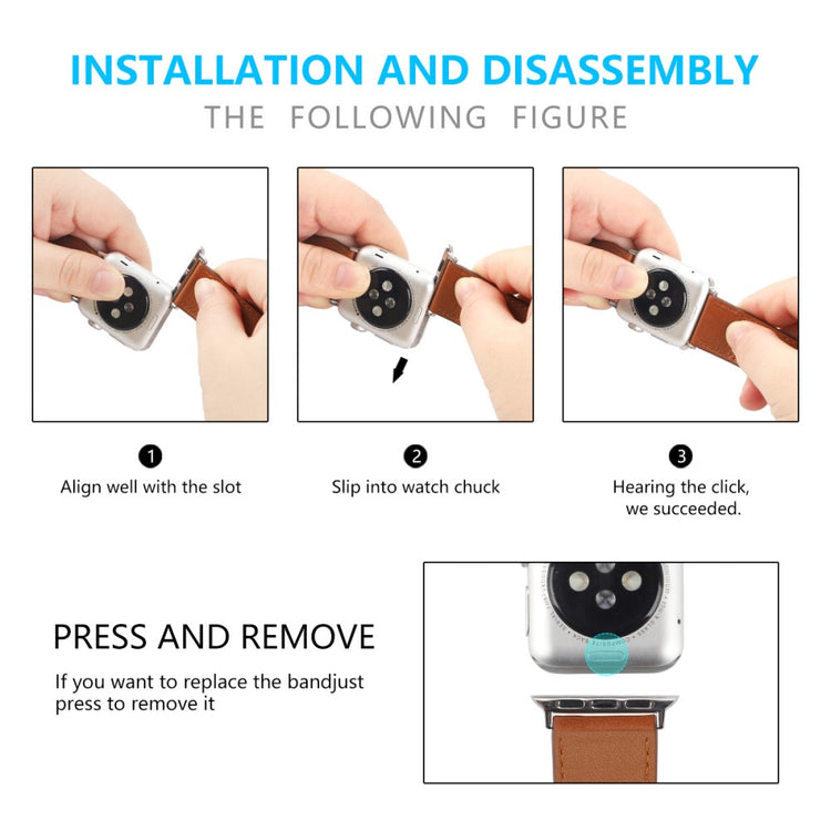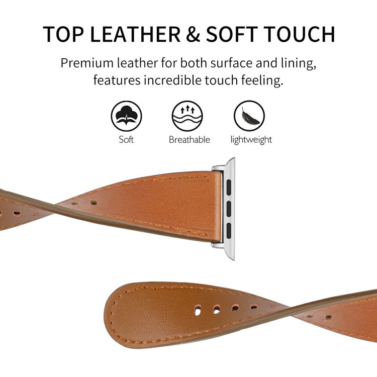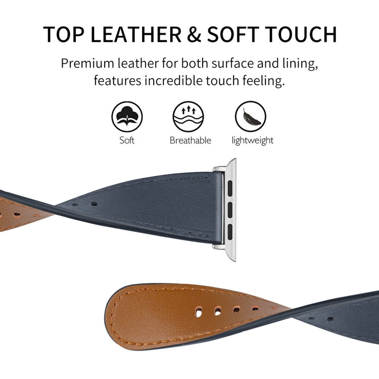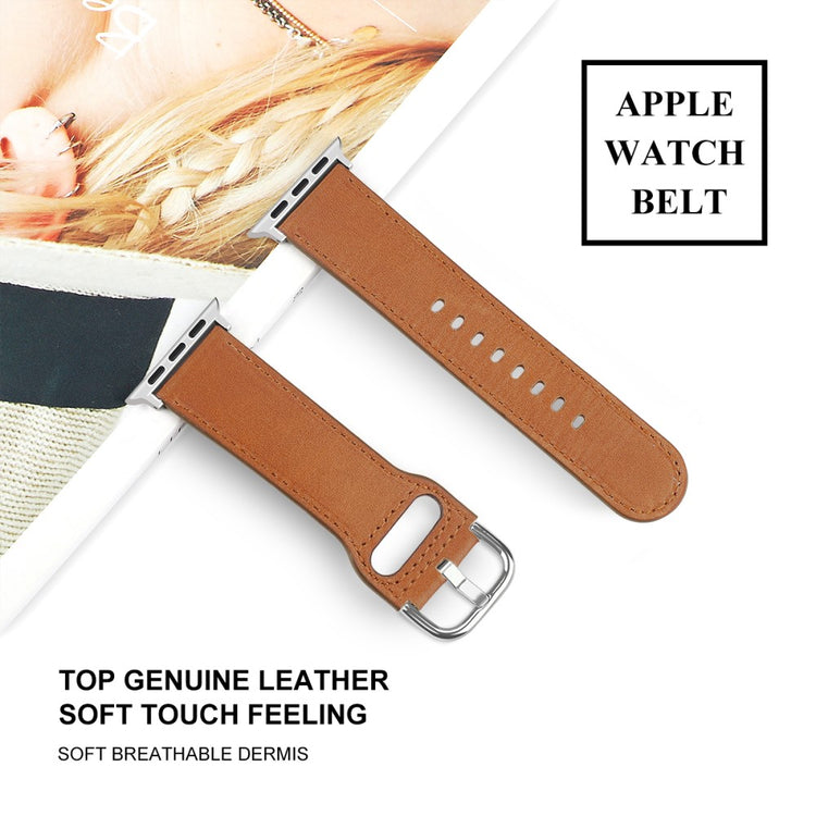 Dette er en reim av ekte ku skinn som passer til Apple Watch Series 9 / 8 / 7 41mm / 6 / 5 / 4 / SE (2023) / SE(2022) / SE 40mm / 3 / 2 / 1 38mm, og den er både holdbar og komfortabel å ha på seg. Størrelsen kan justeres etter individuelle håndleddsomganger, noe som gjør den til et ideelt valg for å erstatte den gamle eller ødelagte reimen. Dette er en perfekt reim for arbeid, date, reise og daglig bruk.