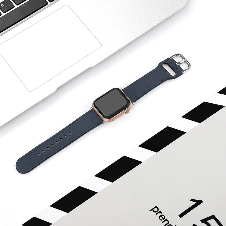 Denne remmen i ekte kuskinn er både slitesterk og behagelig å ha på. Den er perfekt for Apple Watch Series 9 / 8 / 7 41mm / 6 / 5 / 4 / SE (2023) / SE(2022) / SE 40mm / 3 / 2 / 1 38mm. Størrelse L.