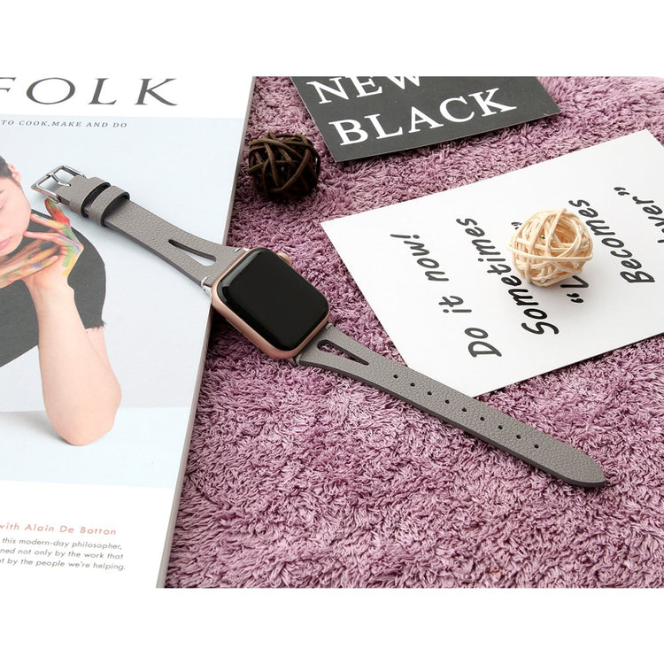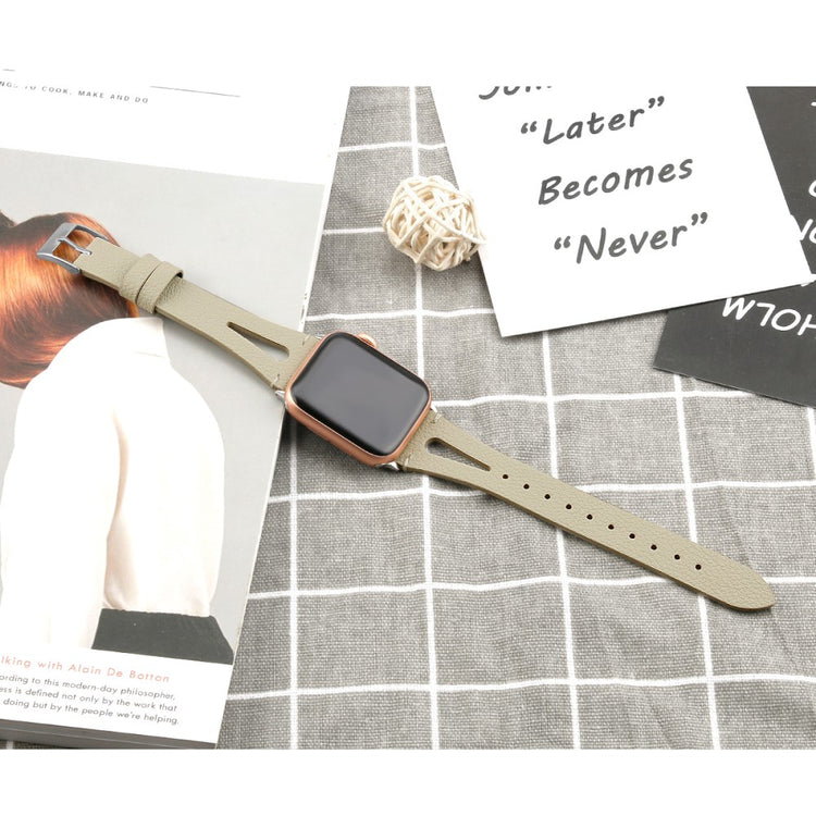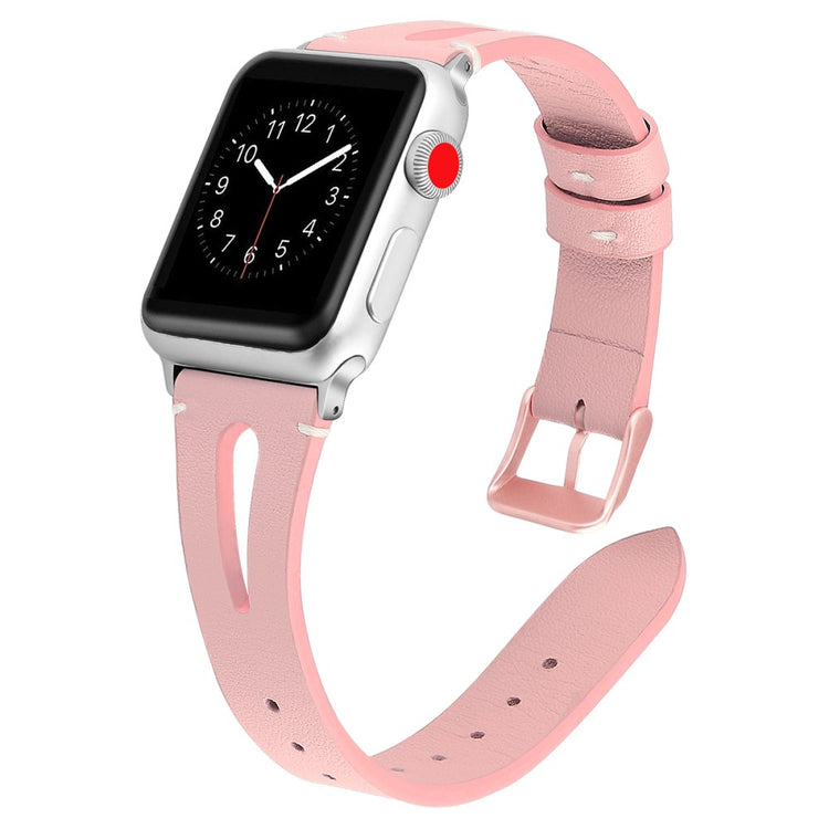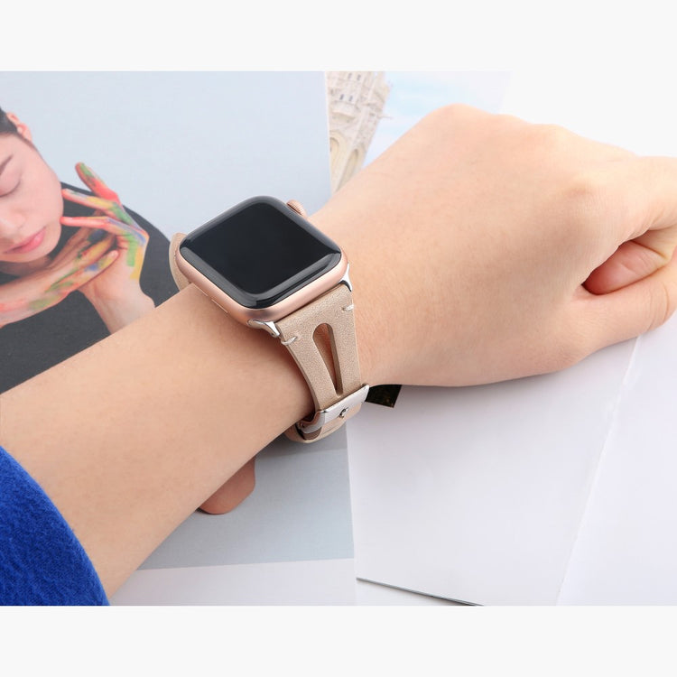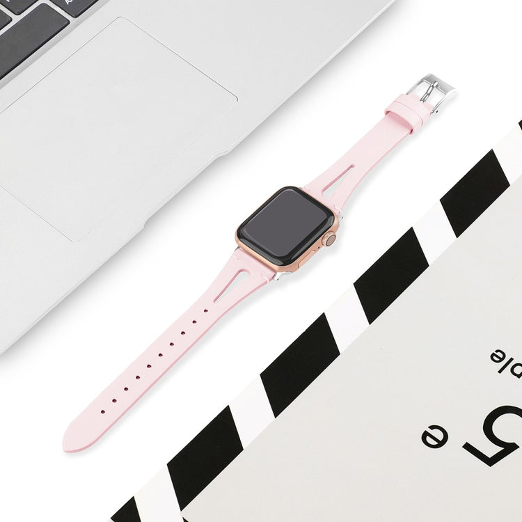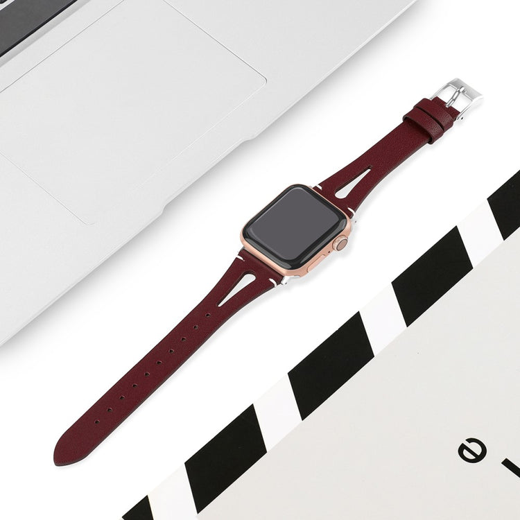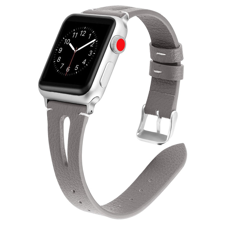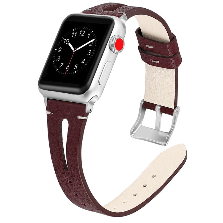 Oppgrader stilen din med vårt ekte ku skinn klokkerem med utskjæringer, spesielt designet for Apple Watch. Denne elegante remmen er både lettvekts og myk, noe som gjør at du nesten glemmer at du har den på deg. Den fleksible passformen gjør at den passer håndleddet til både små og store håndledd, fra 5.5 til 7.8 tommer, og gir en perfekt komfort hele dagen. Installasjonen er enkel takket være den høy-kvalitets rustfrie stål koblingen, som fungerer sømløst med den originale iWatch. Med en vekt på bare 17g er denne remmen en uslåelig kombinasjon av stil og funksjonalitet. Gi din Apple Watch et nytt og luksuriøst utseende med vår klokkerem i kvalitetsku skinn!