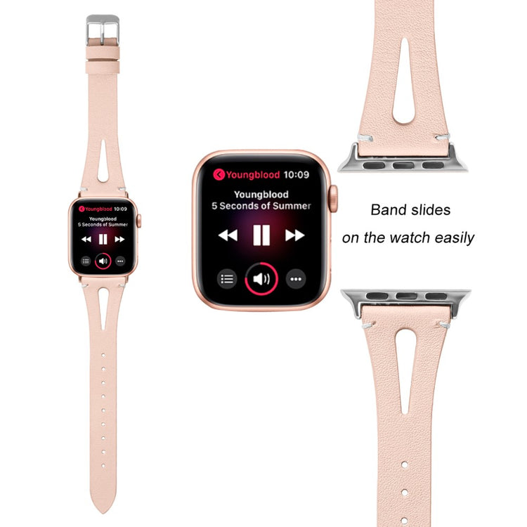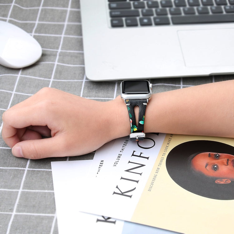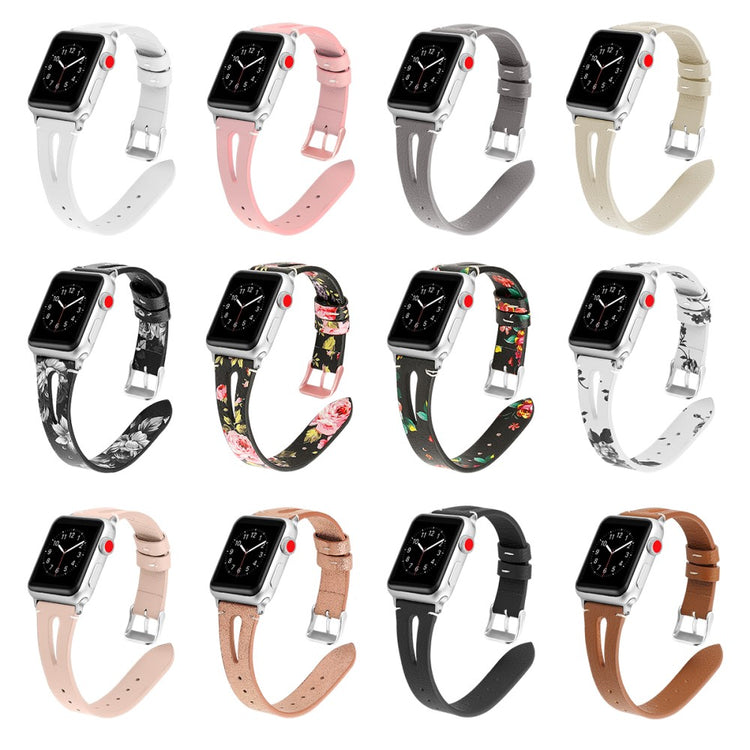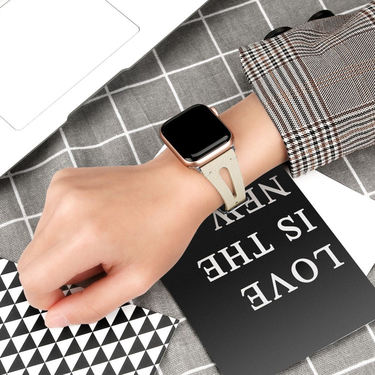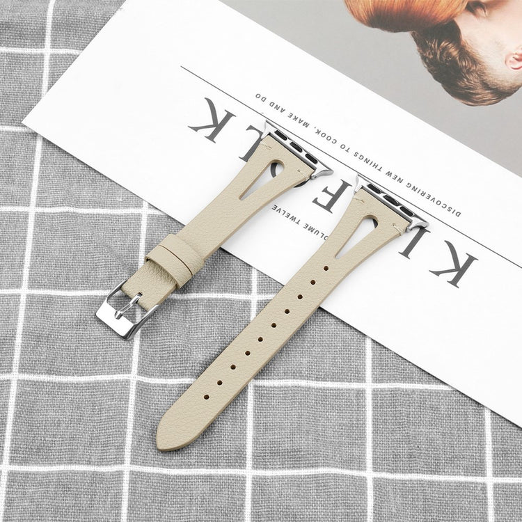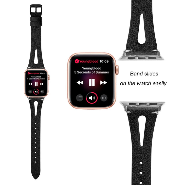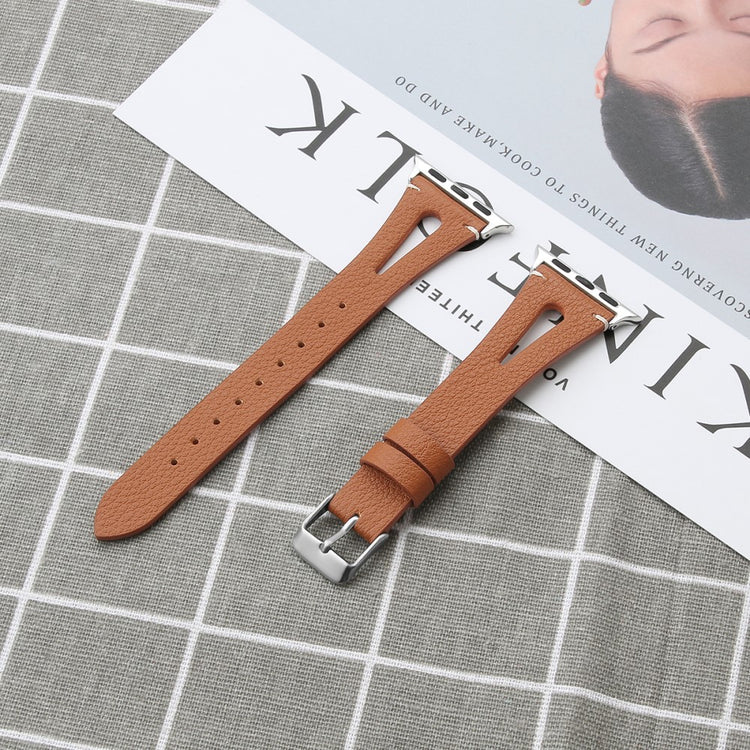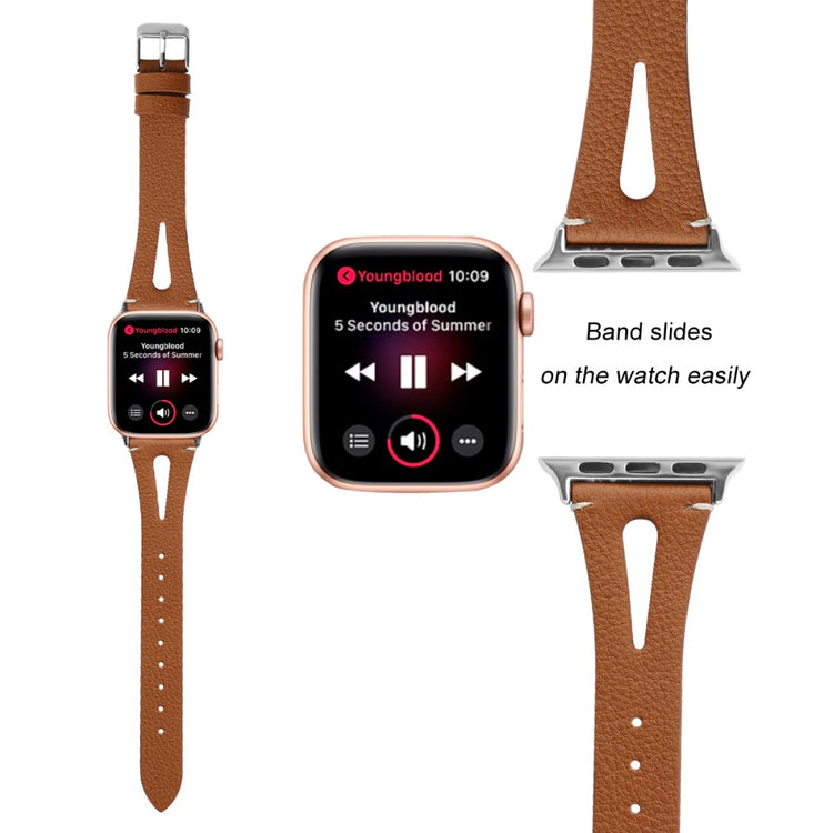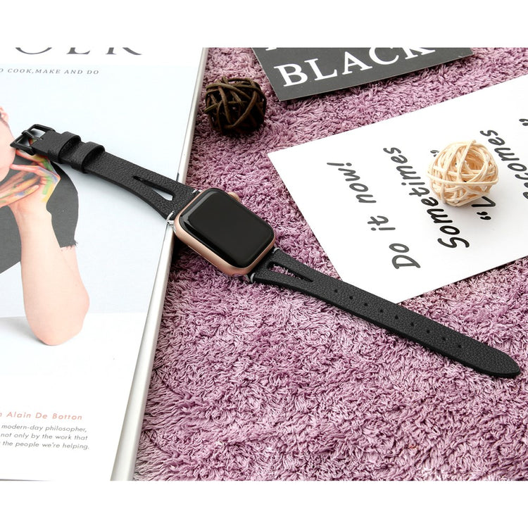 Oppgrader stilen din med vårt ekte ku skinn klokkerem med utskjæringer, spesielt designet for Apple Watch. Denne elegante remmen er både lettvekts og myk, noe som gjør at du nesten glemmer at du har den på deg. Den fleksible passformen gjør at den passer håndleddet til både små og store håndledd, fra 5.5 til 7.8 tommer, og gir en perfekt komfort hele dagen. Installasjonen er enkel takket være den høy-kvalitets rustfrie stål koblingen, som fungerer sømløst med den originale iWatch. Med en vekt på bare 17g er denne remmen en uslåelig kombinasjon av stil og funksjonalitet. Gi din Apple Watch et nytt og luksuriøst utseende med vår klokkerem i kvalitetsku skinn!