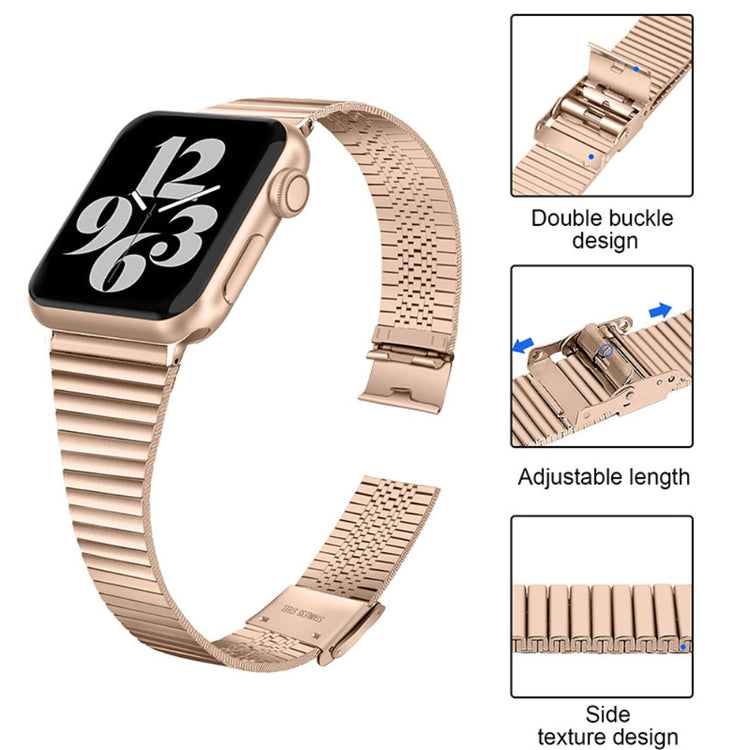 Oppgrader din Apple Watch med denne stilige og robuste klokkereimen i rustfritt stål. Med et enkelt og stilrent design passer den perfekt til hverdagsbruk og gir klokken din et sofistikert preg. Den er et ideelt erstatning for din gamle, slitte reim.