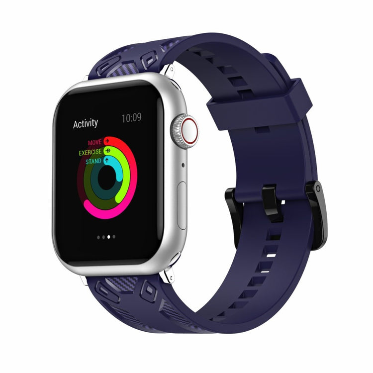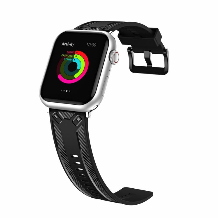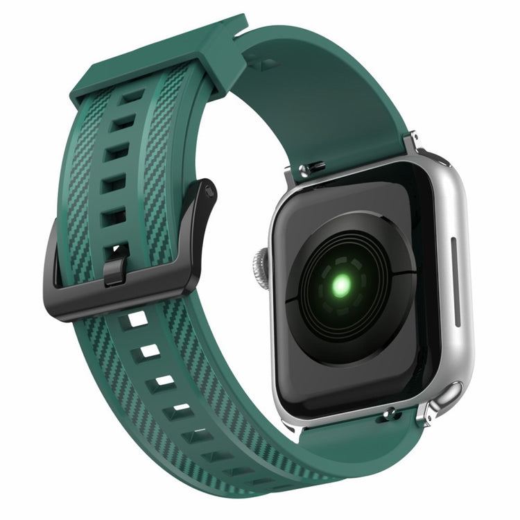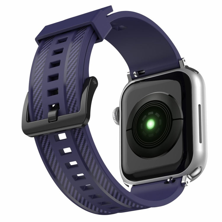 Denne slitesterke silikonremmen med karbonfibertekstur gir Apple Watch-en din et stilig og moderne utseende. Remmen er laget av miljøvennlig silikonmateriale og er svært motstandsdyktig mot riper.