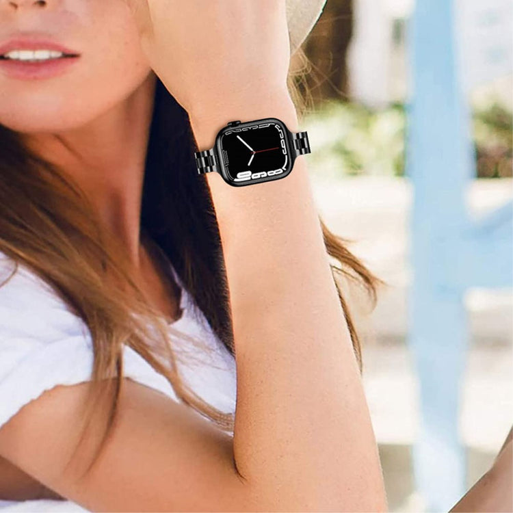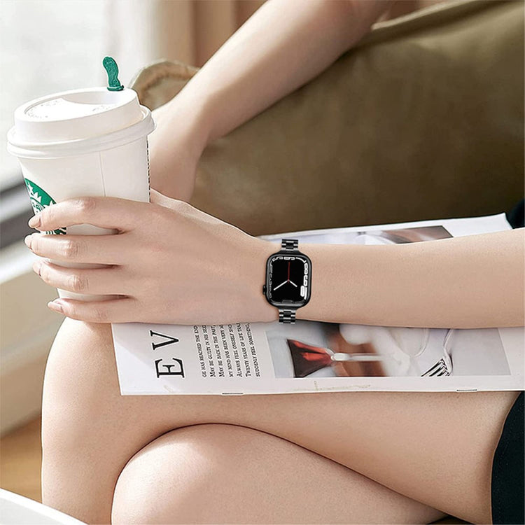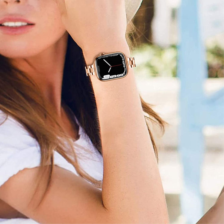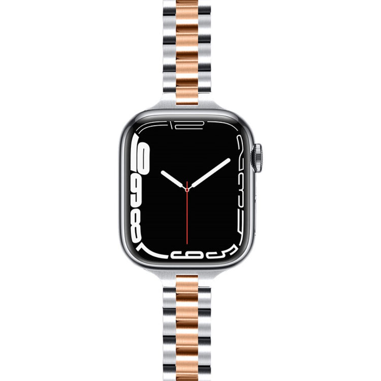 Oppgrader ditt tilbehør med dette elegante 3 Perler Klokkerem i Premium Rustfritt Stål laget for Apple Watch. Denne remmen er laget av høykvalitets rustfritt stål som sikrer både stil og holdbarhet. Den oppdaterte dobbelspennen gir en robust og slitesterk løsning, perfekt for daglig bruk. Med sitt vakre og stilige design gjør den at din Apple Watch ser unik og elegant ut, noe som skiller deg ut i mengden. Den dobbeltlåsende foldespennen gir ekstra sikkerhet og trygghet, slik at du kan være sikker på at remmen sitter godt på håndleddet. I tillegg er det enkelt og raskt å justere remmen for perfekt passform, som kan tilpasses håndleddsomkrets fra 5,5" til 8,5". Gjør ditt smartklokketilbehør til en stilfull opplevelse med denne fantastiske klokkenremmen!