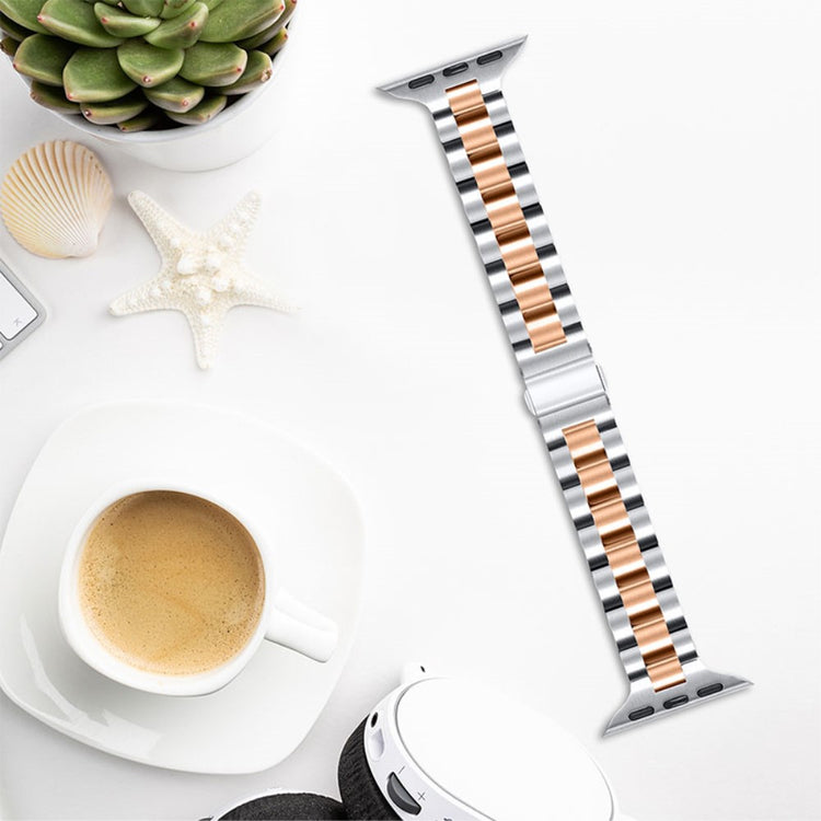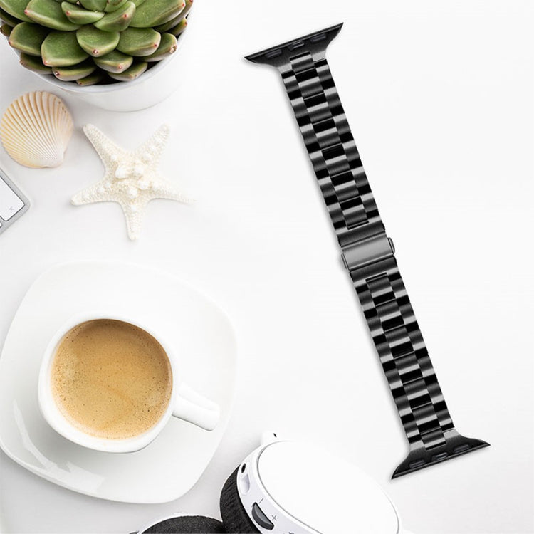 Denne stilige klokkereimen med 3 perler er laget av høykvalitets rustfritt stål, oppgradert til en mer robust og slitesterk dobbel spenne. Designet er elegant og generøst, og gir din Apple Watch et unikt utseende.