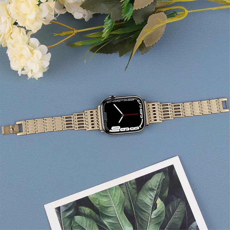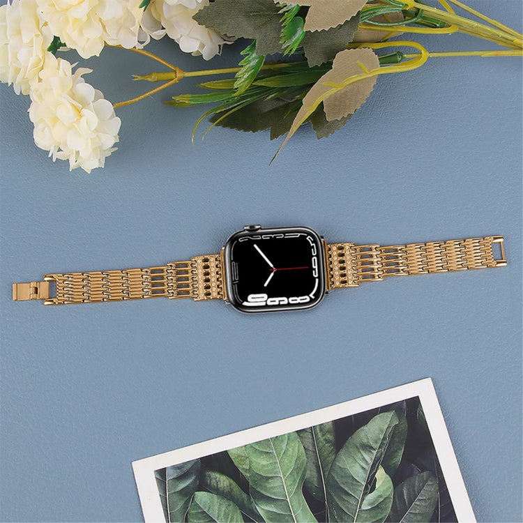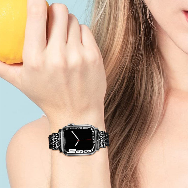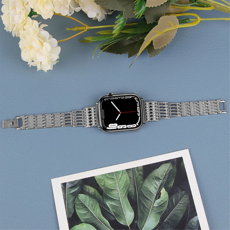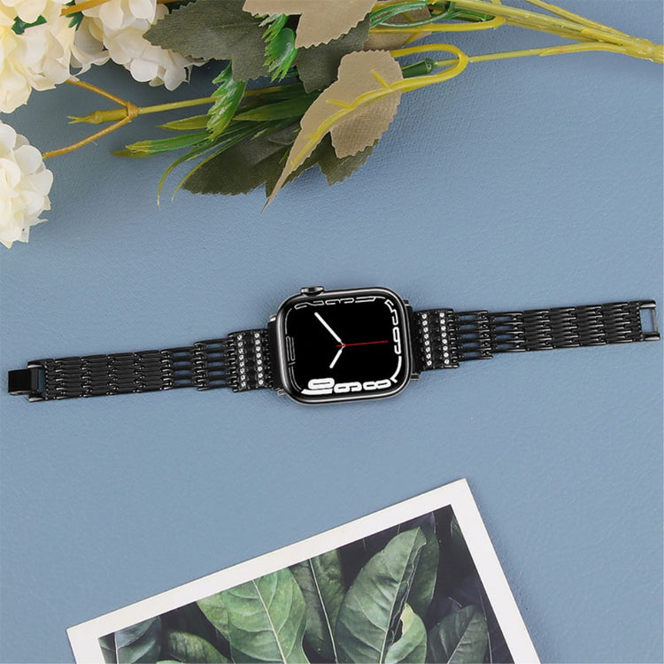 Denne stilige klokkelenken er laget av høykvalitets 304 rustfritt stål, i stedet for sink- eller aluminiumslegering, noe som gjør den både elegant og slitesterk. Med utsøkte og glitrende rhinestones vil denne lenken gi din Apple Watch et sofistikert og feminint preg.