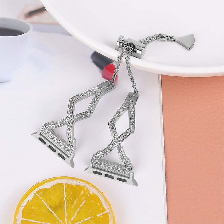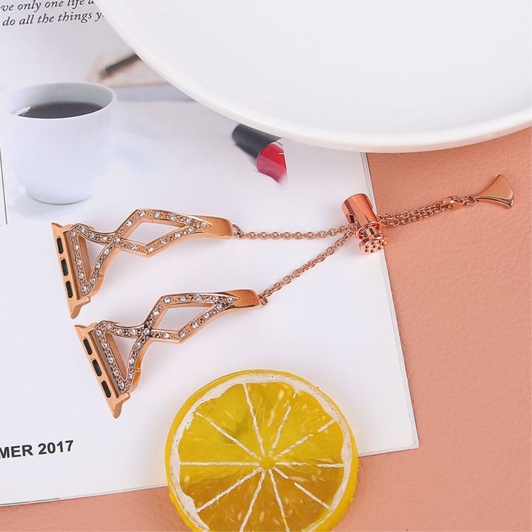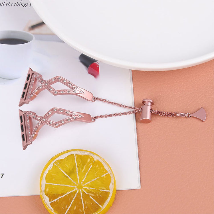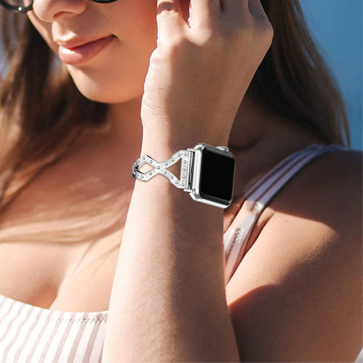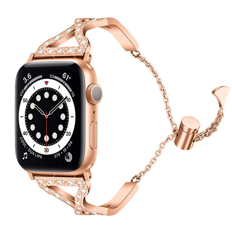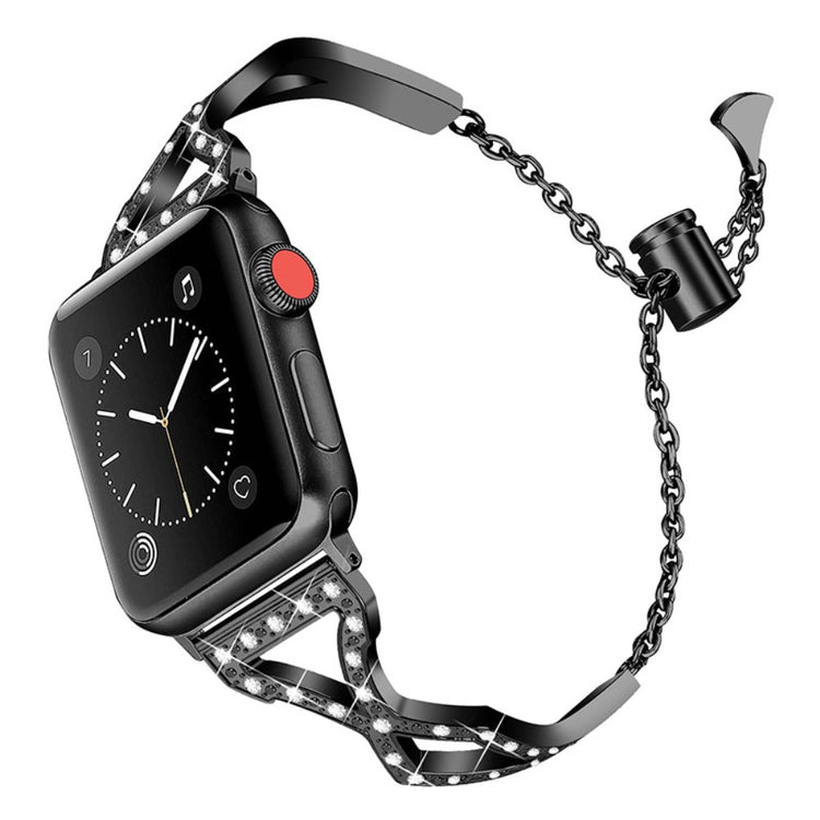 Oppgrader Apple Watch-en din med denne stilige og funksjonelle klokkekremmen i premium 304 rustfritt stål. Med et distinkt uthulet design og glitrende rhinestone-dekor, vil denne remmen gi klokken din et elegant og unikt preg. Remmen er både lett og attraktiv, og det slitesterke materialet sikrer langvarig bruk.