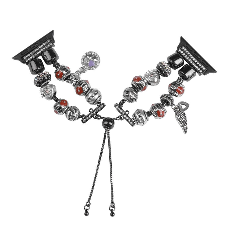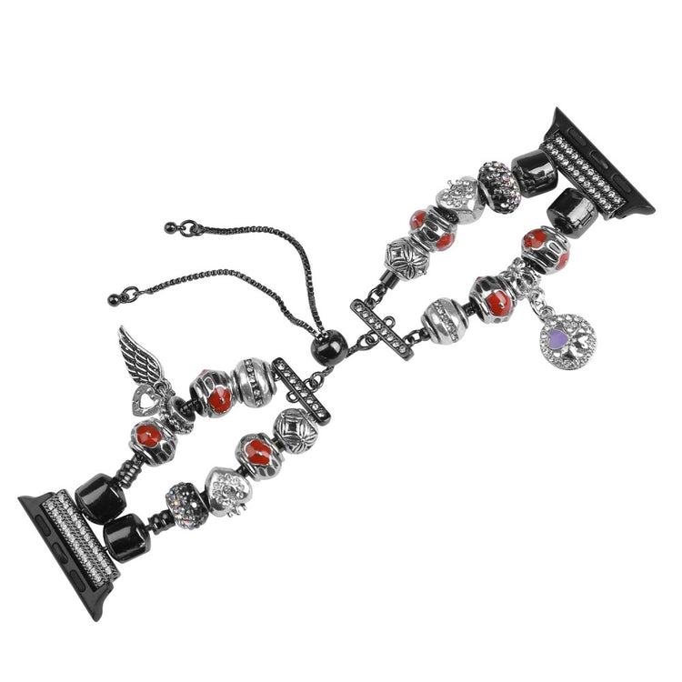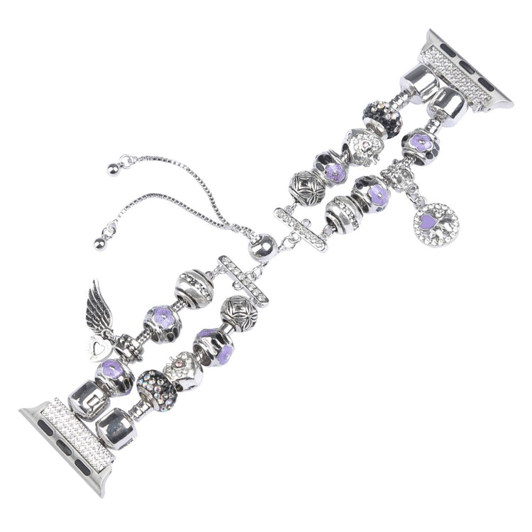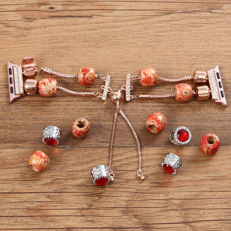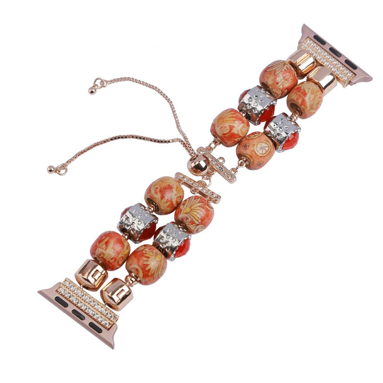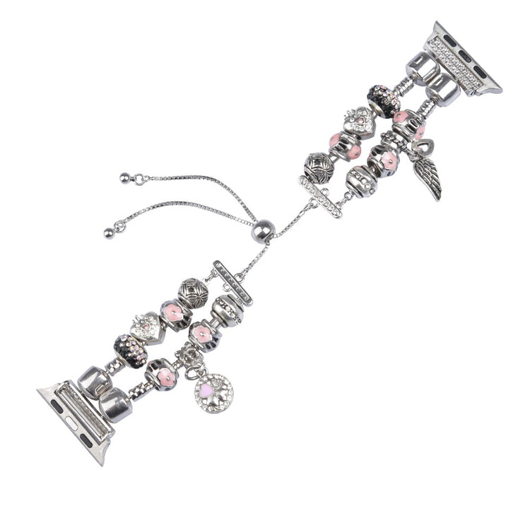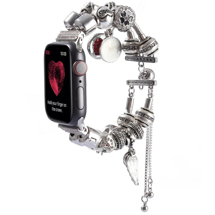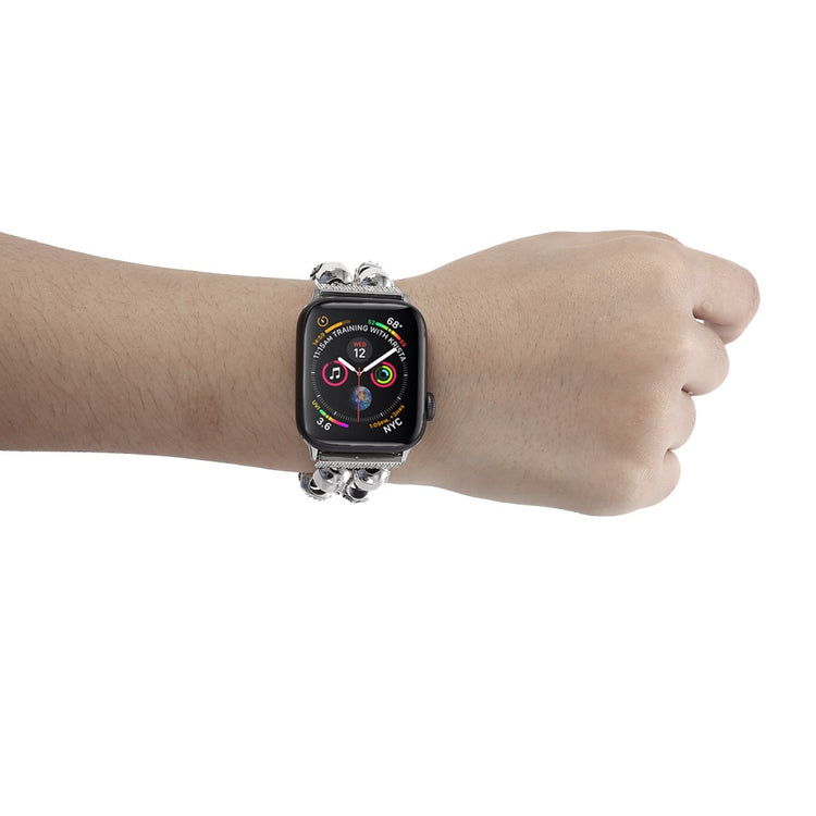 Gi din Apple Watch et unikt og stilig preg med dette retroinspirerte armbåndet. Laget av metall, treperler og små metallornamenter, gir dette armbåndet et sofistikert og iøynefallende utseende.