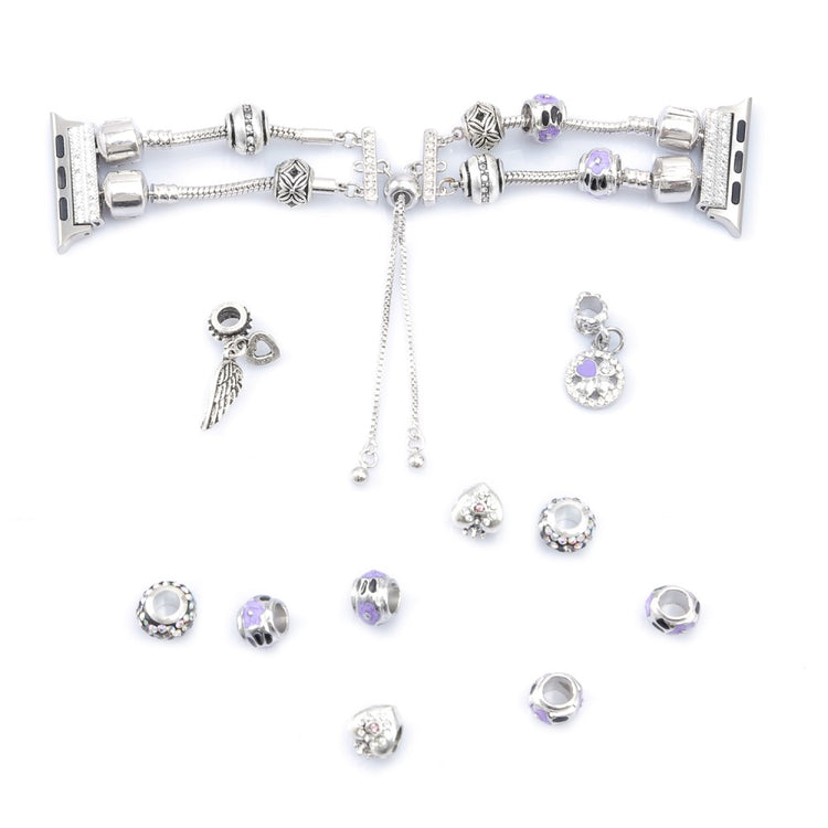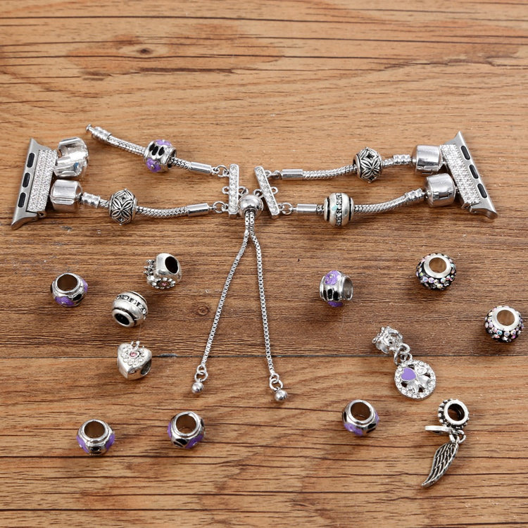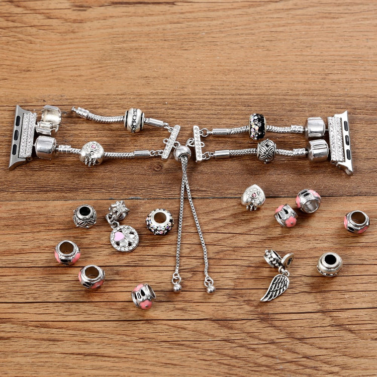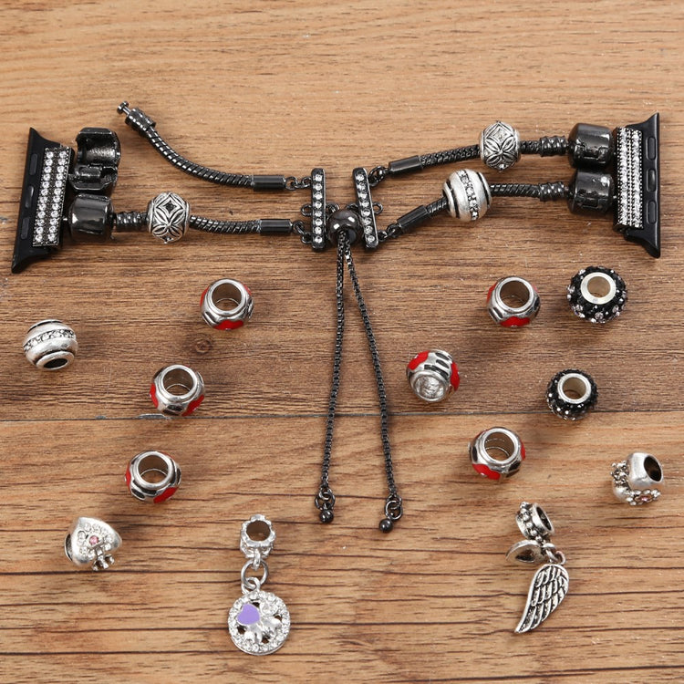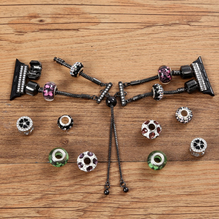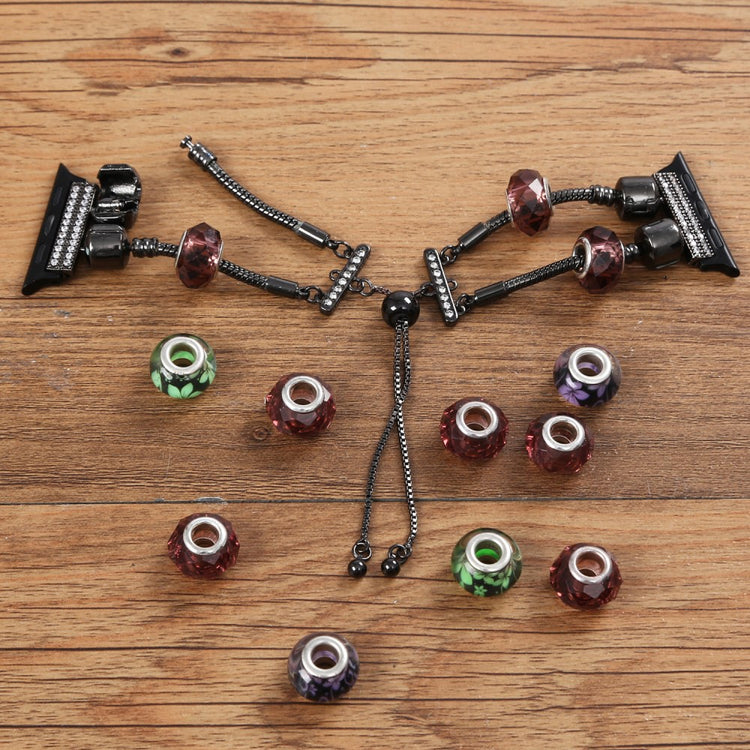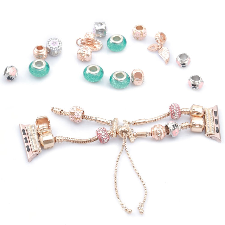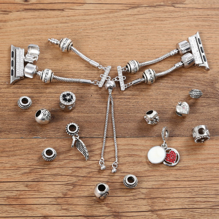 Gi din Apple Watch et unikt og stilig preg med dette retroinspirerte armbåndet. Laget av metall, treperler og små metallornamenter, gir dette armbåndet et sofistikert og iøynefallende utseende.