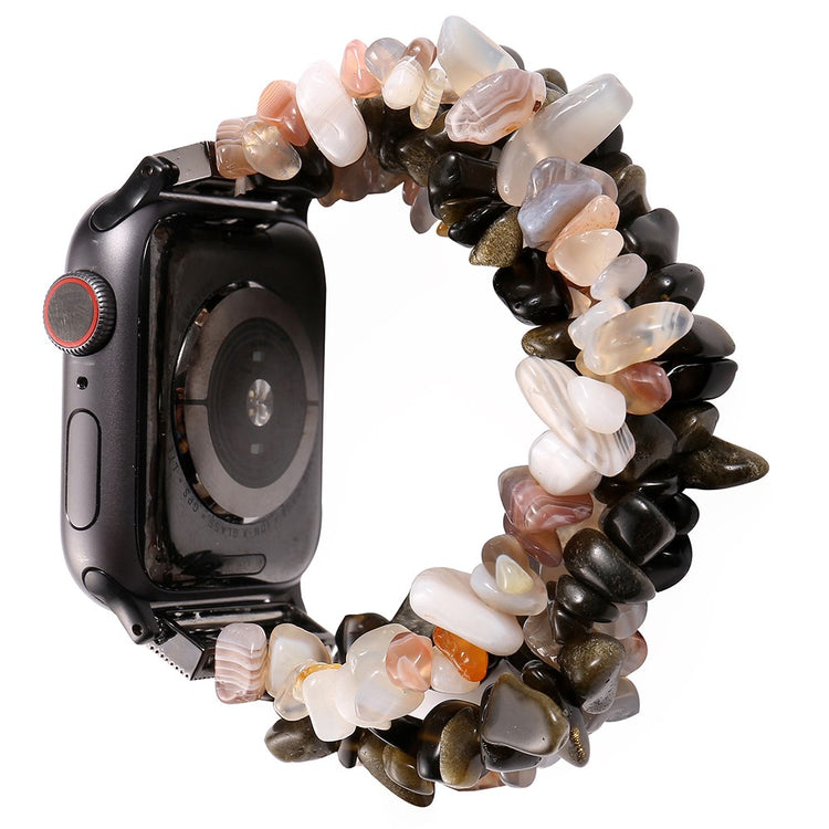 Utforsk skjønnheten i naturen med vårt erstatningsrem for smartklokker laget av naturlige steiner. Denne remmen gir ikke bare et stilfullt utseende, men har også en glatt overflate som sikrer en behagelig opplevelse uten å skrape håndleddet eller skade huden. Den er konstruert med fire rader av naturlige steiner, nøye sammenflettet med sterke tråder, noe som vitner om håndverksmessig kvalitet. Dette er den perfekte erstatningen for en gammel eller ødelagt klokkerem, og den kommer i flere stiler for å dekke ulike behov. Med en lengde på 150 mm og justerbar størrelse, passer den håndleddene med omkrets fra 170 mm til 200 mm. Oppgrader stilen din i dag med en tidløs, naturlig detalj som setter prikken over i-en på din smartklokke!