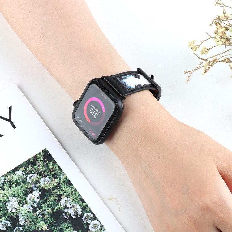 Denne stilige reimen er laget av ekte lær, noe som gir en myk og komfortabel brukeropplevelse. Med et unikt blekkmaleri-mønster vil klokken din skille seg ut med et stilig og personlig preg.