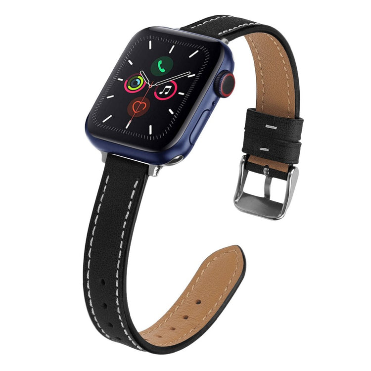 Rigtigt godt Apple Watch Series 7 41mm Ægte læder Rem - Sort#serie_3