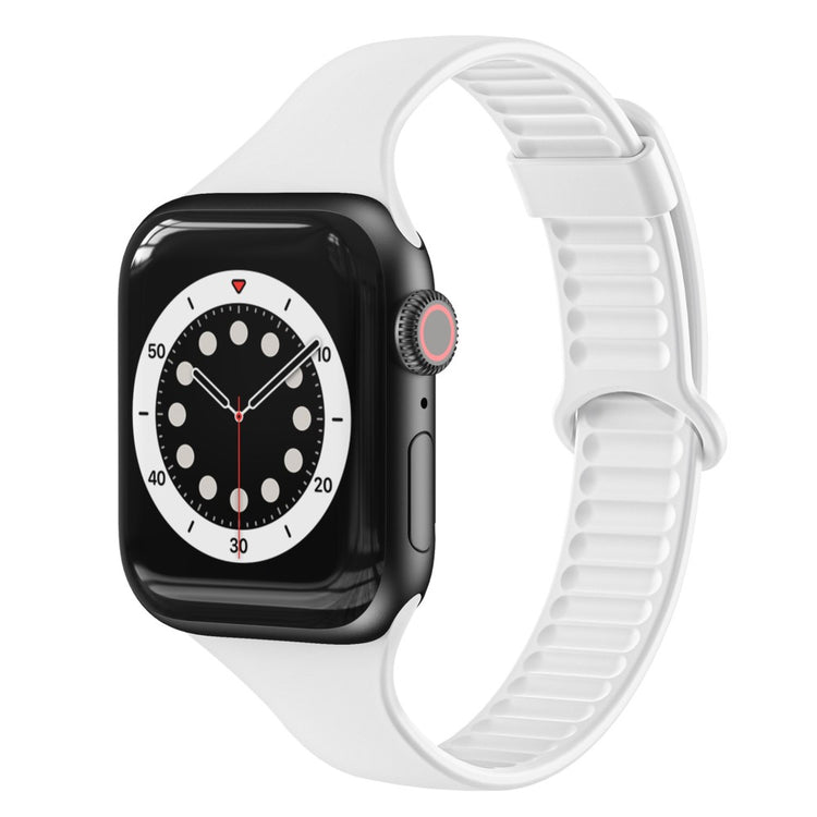 Denne TPU-reimen er designet for Apple Watch Series 9 / 8 / 7 41mm / 6 / 5 / 4 / SE (2023) / SE (2022) / SE 40mm / 3 / 2 / 1 38mm. Laget av premium TPU, er den slitesterk og holdbar. Den ergonomiske designen gjør reimen myk og behagelig å ha på.