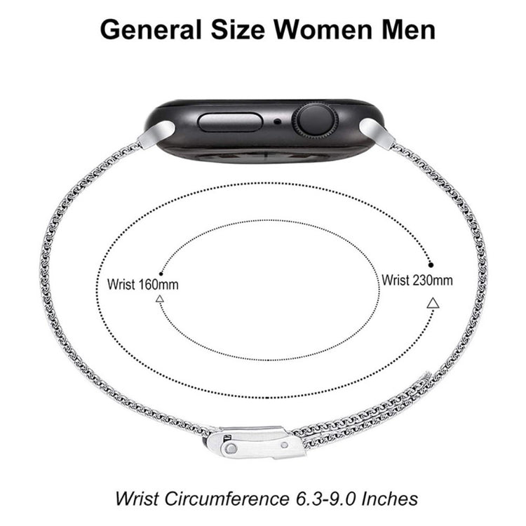 Oppgrader din klokkeopplevelse med vårt stilige og holdbare klokkerem laget av høykvalitets rustfritt stål. Dette er den perfekte erstatningen for din gamle eller ødelagte rem. Med en justerbar lengde som passer de fleste håndleddsstørrelser (160-230mm/6.3-9.0 tommer), kan du enkelt tilpasse det til din egen komfort. Den pustende, fine mesh-designen sørger for at håndleddet ditt holder seg kjølig og unngår svette, selv i lange perioder med bruk. Enten du er på jobb eller trening, gir denne remmen en komfortabel bæreopplevelse som både er funksjonell og stilfull. Gjør klokkeslettet enda mer fortryllende med denne elegante remmen til din Apple Watch.