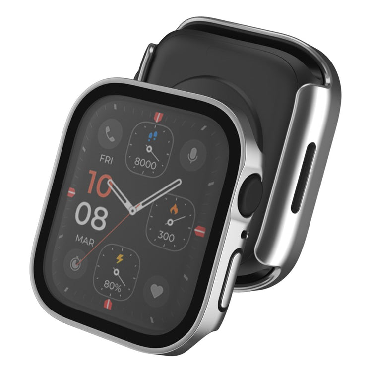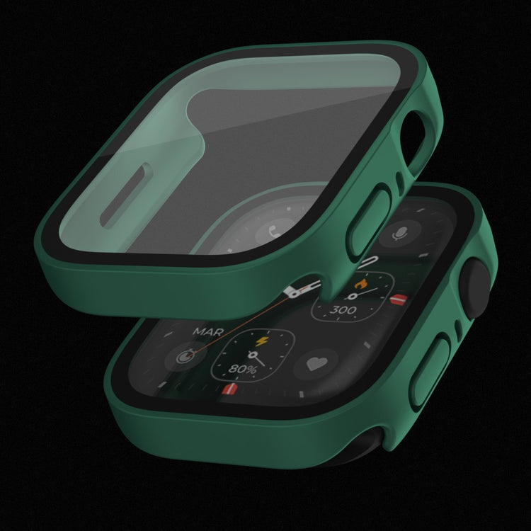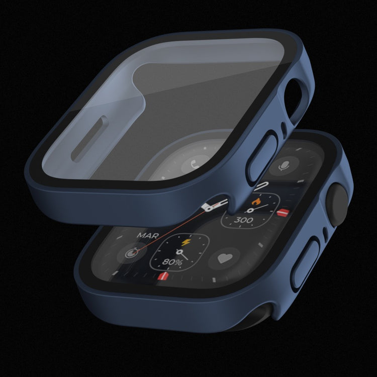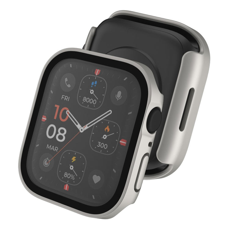 Dette robuste PC-dekselet med innebygd skjermbeskytter av herdet glass dekker både skjermen og kantene på din Apple Watch. Det gir 360-graders beskyttelse mot riper, støt og fall.