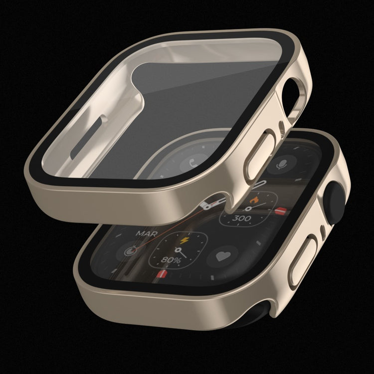 VannavvisendePC-deksel med innebygd herdet glass skjermbeskytter til Apple Watch Series 8 / 7 41mm gir 360 graders beskyttelse mot riper, støt og utilsiktede fall. Dekselet hindrer ikke skjermens bruk og beholder original bildekvalitet og berøringsfølsomhet, samtidig som det er enkelt å installere med en praktisk snap-on design. Det er utformet med presise utskjæringer for enkel tilgang til alle kontroller, knapper og sensorer, noe som gjør det perfekt både til forretnings- og formelle anledninger, samt til hverdagsbruk.