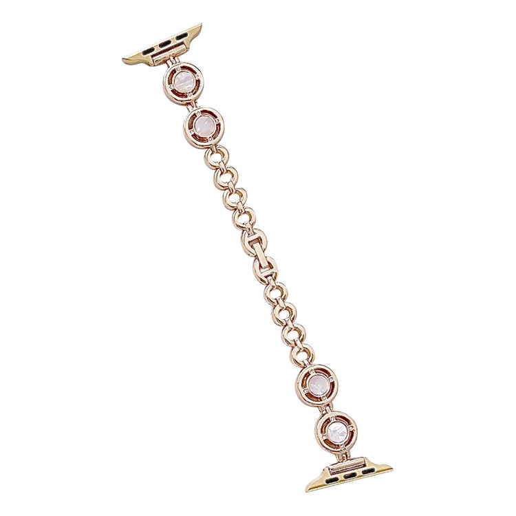 Denne metallremmen er designet for Apple Watch og gir klokken din et elegant og stilig utseende. Remmen er laget av høykvalitets metall, noe som sikrer langvarig holdbarhet. Med sin sirkulære design og fine utførelse, føles remmen glatt og behagelig på håndleddet.