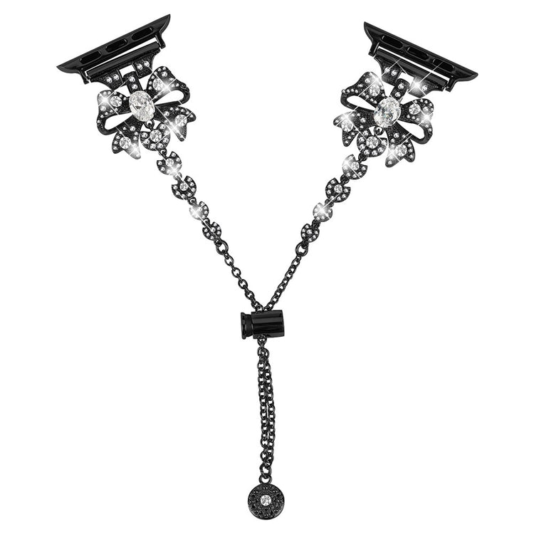 Oppdag et stilrent og elegant urarmbånd med rhinestones og bueknute-design som passer til Apple Watch Series 9 / 8 / 7 / 41mm / 6 / 5 / 4 / SE / SE (2022) / SE (2023) 40mm / 3 / 2 / 1 38mm. Dette armbåndet er laget av høykvalitets rustfritt stål, hvilket gjør det både solid og holdbart. Med en snorelukking-design er det enkelt å justere størrelsen for perfekt passform.
