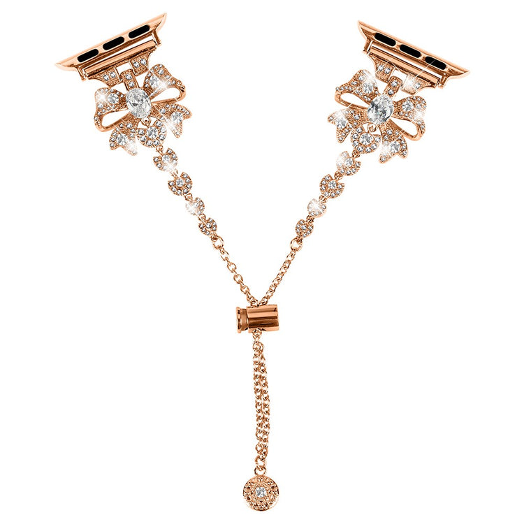 Oppgrader Apple Watch-en din med denne lekre klokkereimen i rustfritt stål. Rhinestones og en delikat sløyfe gir et sofistikert og stilig preg.