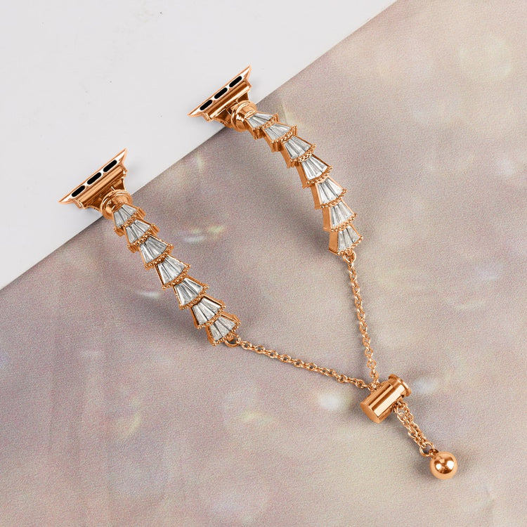 Oppgrader din stil med dette elegante armbåndet til smartklokke som passer til Apple Watch Series 9 / 8 / 7 41mm / 6 / 5 / 4 / SE / SE (2022) / SE (2023) 40mm / 3 / 2 / 1 38mm. Dette jewelry armbåndet er justerbart, noe som gjør at det passer nesten alle kvinner perfekt. Du kan enkelt tilpasse størrelsen ved å skyve kjedeadapteren opp og ned, slik at du unngår et for stramt eller for løst armbånd på håndleddet. Laget av glatt, polert rustfritt stål og holdbare materialer, er dette armbåndet en fryd for øyet, som tilfører et streif av glamour og tidløs eleganse til antrekket ditt. Den håndlagde rhinstein-dekorasjonen gir det en unik sjarm som passer til din håndleddsform, og du kan velge mellom ulike klassiske farger, noe som gjør det til et ideelt valg for å finne et alternativ til ditt smartarmbånd. Dette allsidige armbåndet er den perfekte følgesvennen til alle anledninger, enten det er en kaffedate med venner eller glamorøse cocktailfester, og det glitrende armbåndet vil pryde håndleddet ditt, la deg bli sentrum for oppmerksomheten og se mer sjarmerende ut. Det er også passende for spesielle anledninger som bryllupsdager, bursdager, Valentinsdagen og morsdag. Dette luksuriøse armbåndet er en fantastisk gave til venninner eller kjæresten din.