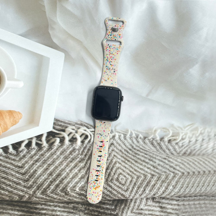 Denne silikonremmen er perfekt for din Apple Watch og gir en komfortabel og stilig brukeropplevelse. Remmen er laget av miljøvennlig og slitesterk silikon, og det elegante mønsteret gir et klassisk og tidløst utseende.