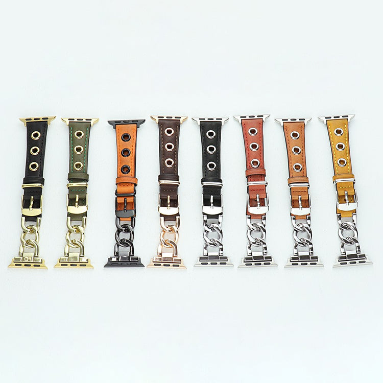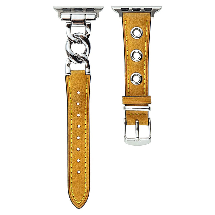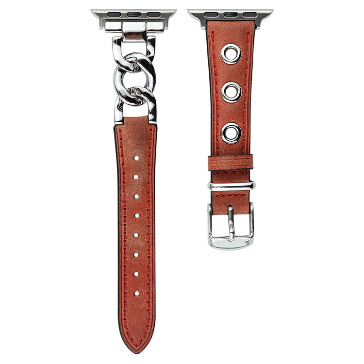 Oppgrader stilen din med dette armbåndet i ekte kalveskinn designet for Apple Watch Ultra 2, Series 9, SE (2023) og flere modeller. Med en unik kjedesign og tre store hull, vil armbåndet ikke bare være komfortabelt å ha på, men også gi et moderne og stilfullt preg på håndleddet ditt. Den praktiske pin-bucklen med flere hull gjør det enkelt å justere lengden, slik at du får en perfekt passform uansett håndleddsstørrelse. Hvis du har et ødelagt armbånd, er dette den ideelle erstatningen som både ser bra ut og fungerer utmerket til hverdagsbruk. Med en størrelse som passer håndleddsomkrets på 125mm-225mm, er dette armbåndet en perfekt tilpasning til din Apple Watch, samtidig som det enkelt kan matches med ditt antrekk. Velg kvalitet og stil – invester i dette armbåndet i dag!