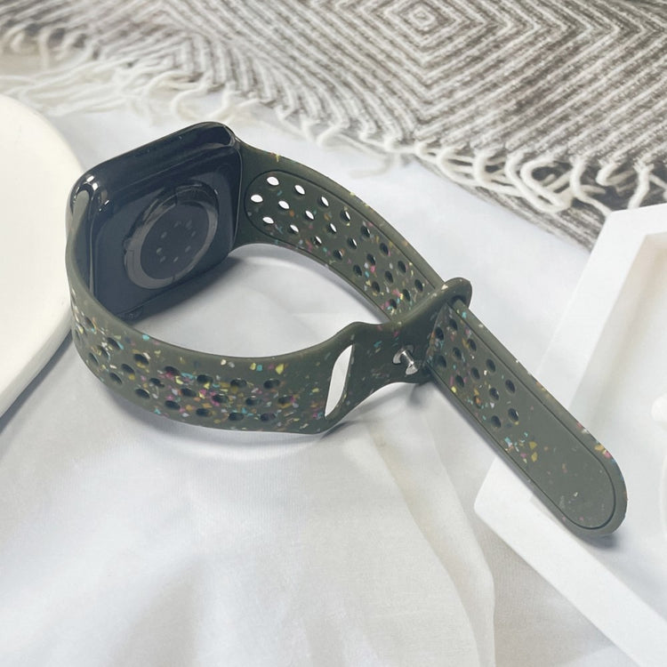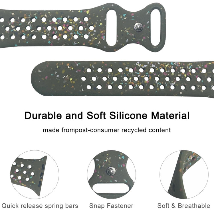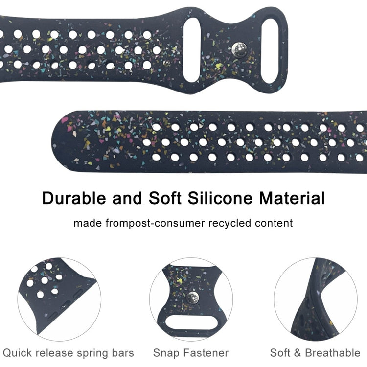 Denne silikonreimen er perfekt for din Apple Watch. Laget av miljøvennlig og slitesterk silikon, tilbyr den en komfortabel og holdbar brukeropplevelse. Det elegante mønsteret gir et klassisk og stilrent utseende som passer til enhver anledning.