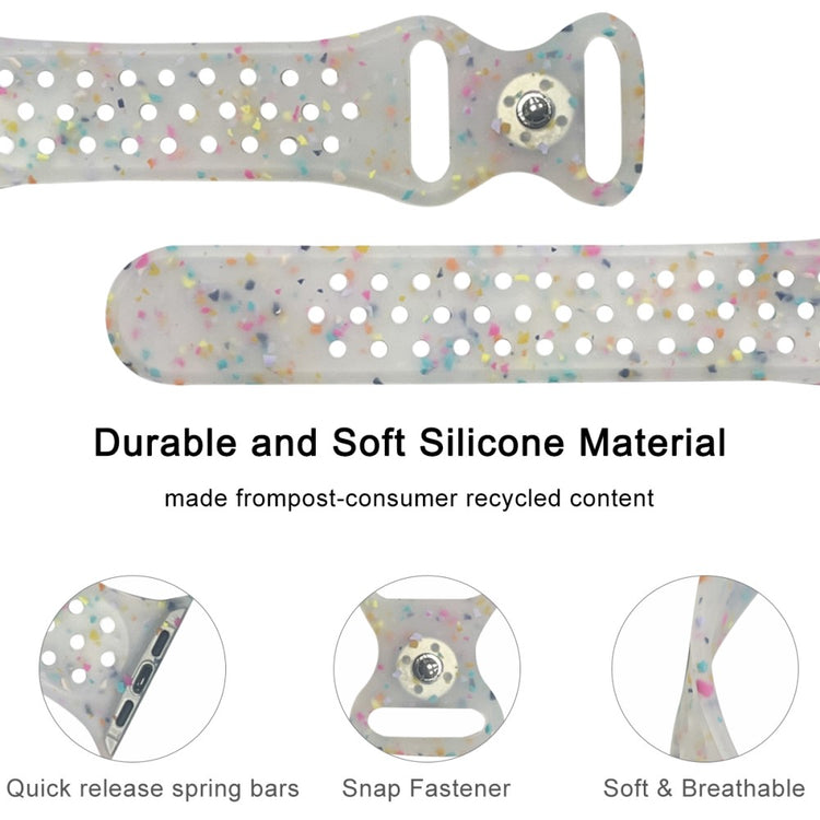 Er du på jakt etter et nytt armbånd til smartklokken din? Vårt Silicone Band er det perfekte valget for deg! Laget av økologisk silikonmateriale, er dette armbåndet både slitesterkt og komfortabelt å bruke. Den mønstrede designen gir et elegant preg, samtidig som det er enkelt og klassisk. Med justerbare hull kan du enkelt tilpasse armbåndet til din håndleddsstørrelse, noe som gjør det perfekt for alle. Det er også en ideell erstatning for ditt gamle eller ødelagte armbånd. Enten du skal på jobb eller drive med sport, vil dette armbåndet være en utmerket følgesvenn i din hverdag. Med en lett vekt på kun 18g og en justerbar lengde som passer håndledd med omkrets fra 135mm til 235mm, er dette armbåndet både praktisk og stilfullt.