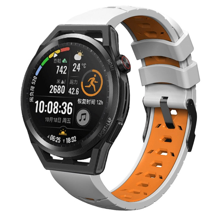 Oppgrader smartklokken din med denne stilige og slitesterke silikonreimen. Det tofarget designet med tre rader med trapesformede hull gir et moderne utseende og enkel justering for perfekt passform.