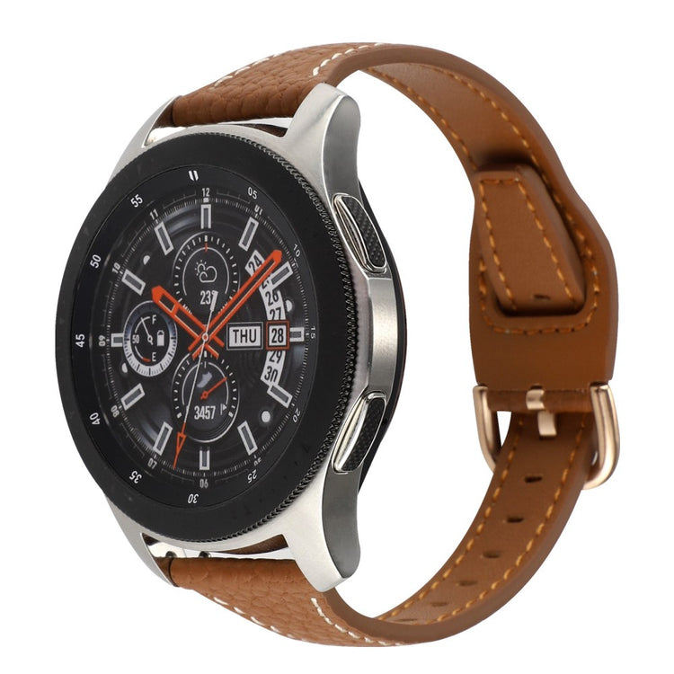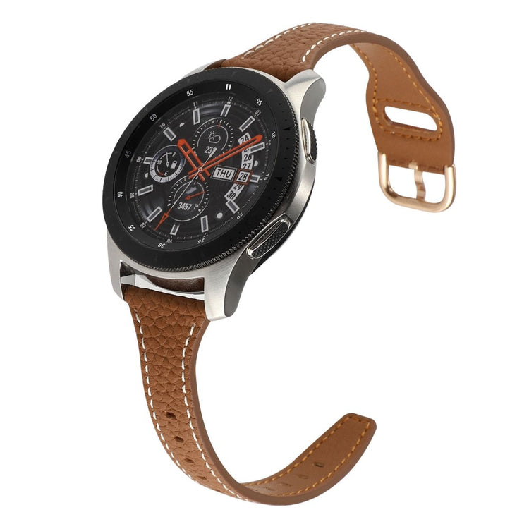Oppgrader din smartwatch med vår 20mm T-formet klokkerem laget av ekte lær med litchi tekstur. Denne klokkereimen har en glatt overflate som gir en komfortabel passform hele dagen, perfekt for både hverdagsbruk og spesielle anledninger. Med en praktisk pin-spenne kan du enkelt ta den av og på, og de justerbare hullene gjør det lett å tilpasse reimen etter din håndleddsstørrelse. Dette er en ideell erstatning for din gamle eller ødelagte klokkereim, og med flere farger å velge mellom, kan du enkelt tilpasse stilen din. Den er kompatibel med en rekke smartklokker som Samsung Galaxy Watch, Huawei Watch, og Garmin, noe som gjør den til en allsidig løsning for ditt tilbehør. Sikre deg denne stilige og funksjonelle klokkereimen i dag!